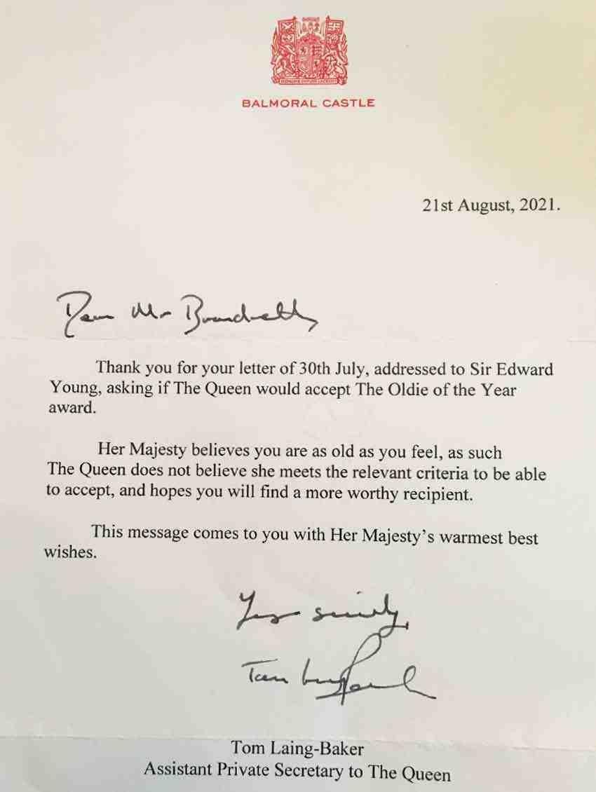 «Її величність переконана в тому, що людина стара настільки, наскільки себе почуває, і тому королева не вважає, що вона відповідає необхідним критеріям для отримання премії, і сподівається, що ви зможете знайти більш гідного одержувача», – заявили представники Єлизавети II у відповідь на присудження нагороди.Протягом 29 років журнал вручає премії «тим, хто зробив особливий внесок у суспільне життя».