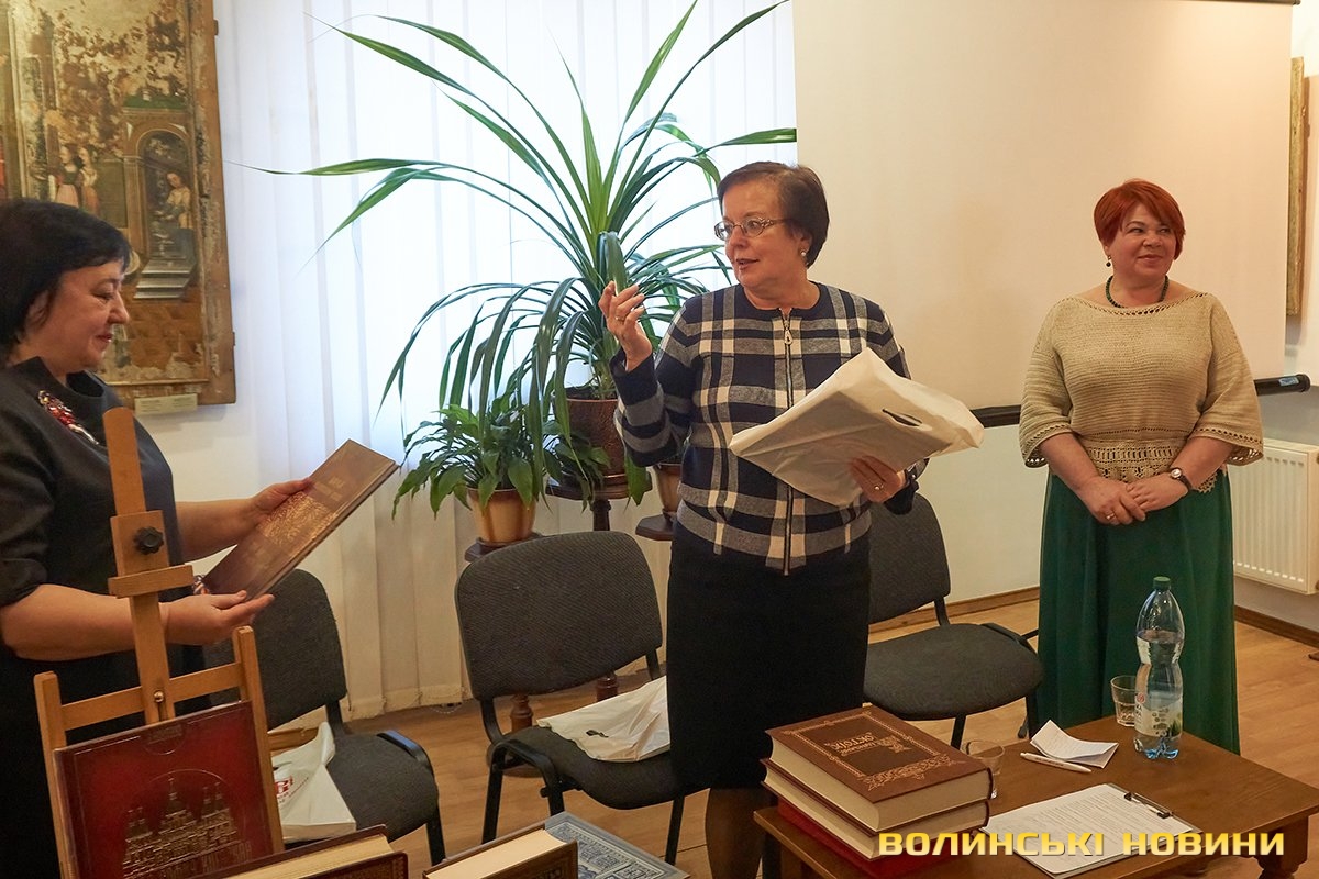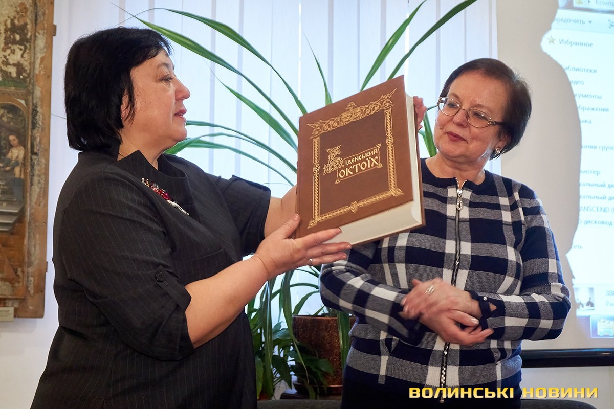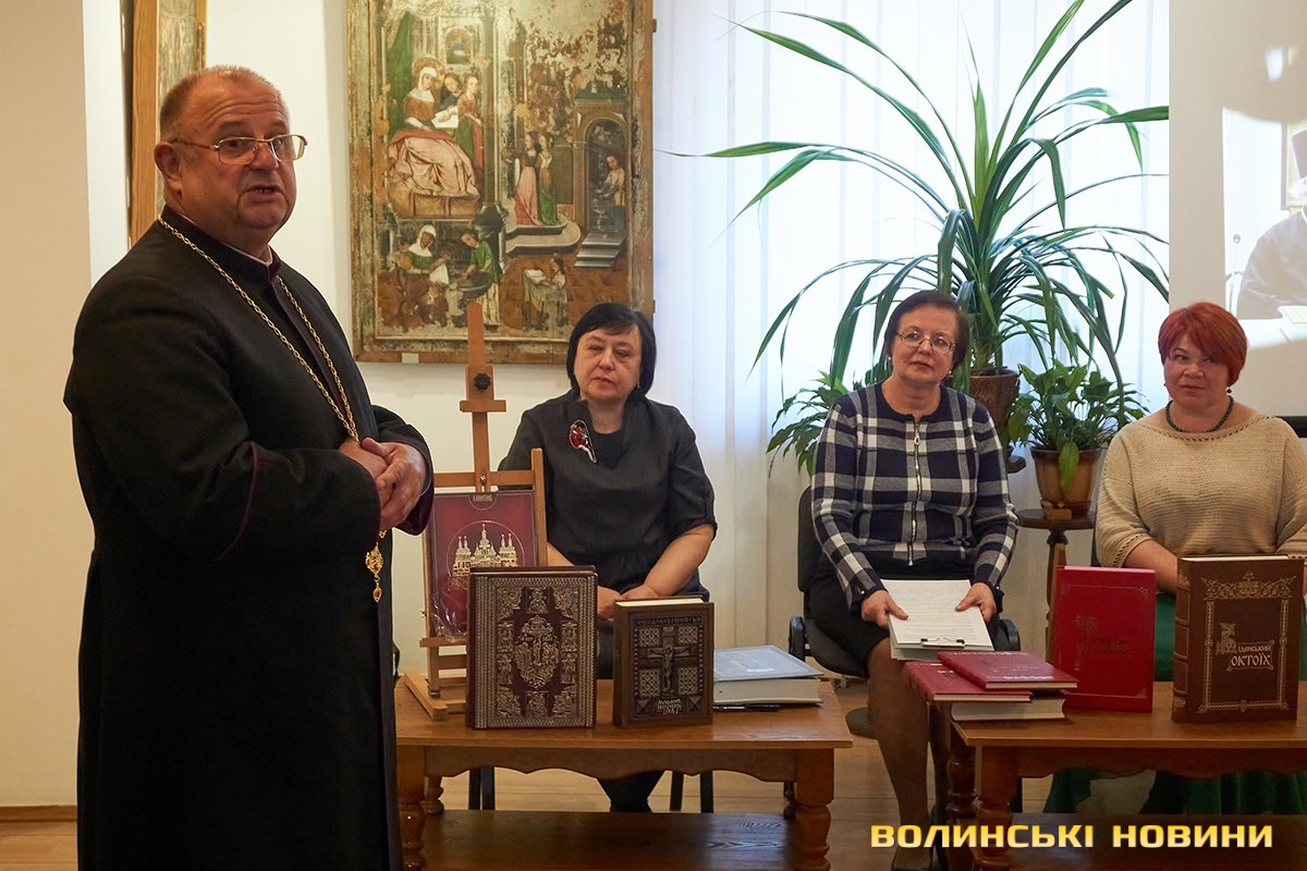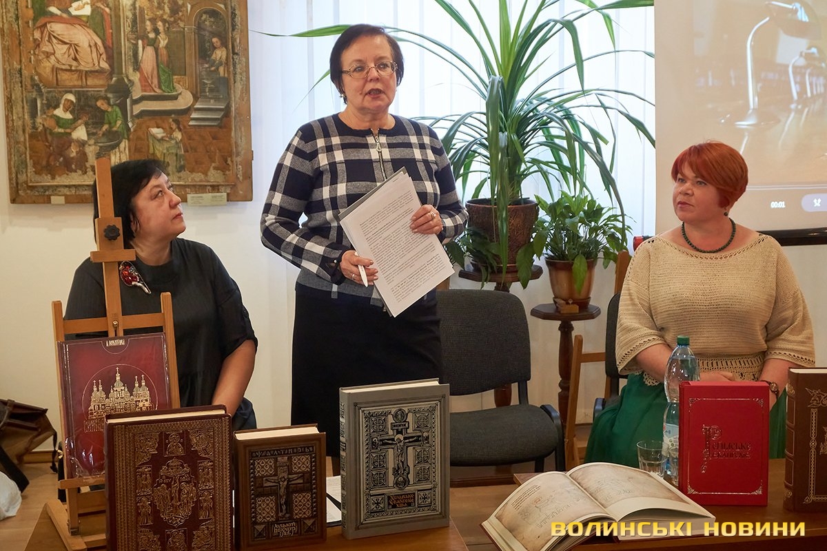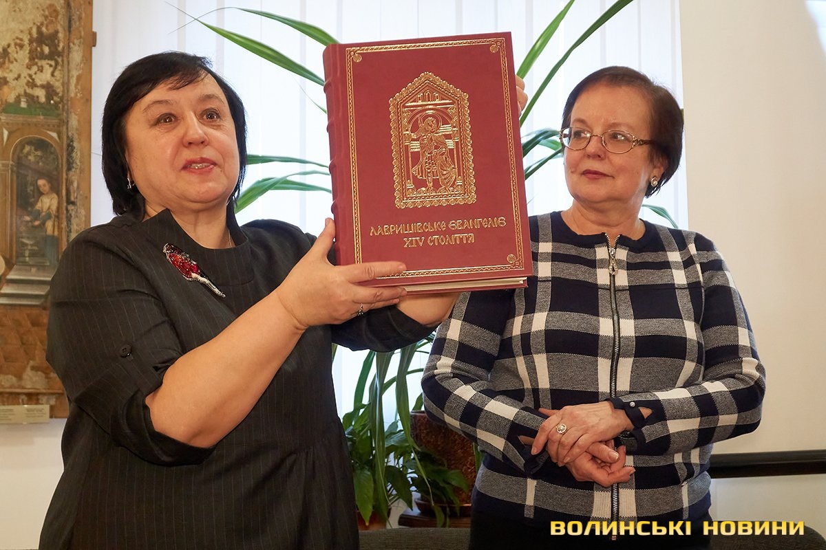 Одним з ініціаторів наукових досліджень та видання Євангелій став настоятель храму Св. Параскеви у селі Ратнів отець Онуфрій. Саме він відшукав вірогідне місцезнаходження першої книги – Луцького Євангелія, яке було у Москві.Друга книга – Луцький Псалтир – також побачила світ завдяки науковим розвідкам отця Онуфрія. Він встановив, що рукопис зберігається аж у Флоренції – в бібліотеці Лоренцо Медічі, яка вважається однією з найбагатших у Європі. Рік листування з тамтешнім керівництвом не минув марно. Італійці таки відшукали книгу, і наша делегація дістала нагоду працювати з нею.Далі була робота з Холмським Євангелієм, Лавришівським Євангелієм (за цю книгу довелося добряче посперечатися з науковцями Білорусі, які вимагали підтвердження її українського походження), Віденським Октоїхом. І нарешті у 2019 році світ побачила мрія Ганни Горобець – Реймське Євангеліє. Розкішне двотомне видання у футлярі є повною факсимільною копією, яка включає ще й дослідницькі матеріали.Присутні на заході священнослужителі, науковці, музейники, представники бібліотек високо оцінили подарунки. До того ж, дехто з них також отримав екземпляри Євангелій, аби передати до своїх книгозбірень. Ось так найкращі зразки нашої культури стають ближчими до людей. І приємно, що нині хай і не оригінали, але їх точні й надзвичайно якісні факсимільні копії доступні усім небайдужим українцям.Текст і фото – Олександр Дурманенко.
