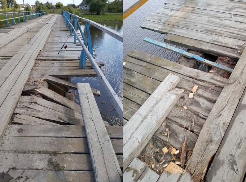 «Каждий день їдемо. Прошлий раз тут їхали конячкою, то вскочила, чуть лапу не строщила. Корови каждий день падають з моста, лапи тоже крутять, ламають, то я не знаю... Нікому не треба село», – розповів волинянин.На ремонт дерев’яного моста у громаді зібрали понад 50 тисяч гривень, зазначила жителька села Березичі Ольга Шпанчук.