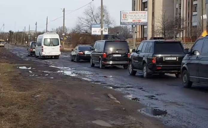 Кортеж Порошенка проскакав по ямах на Львівщині. Відео