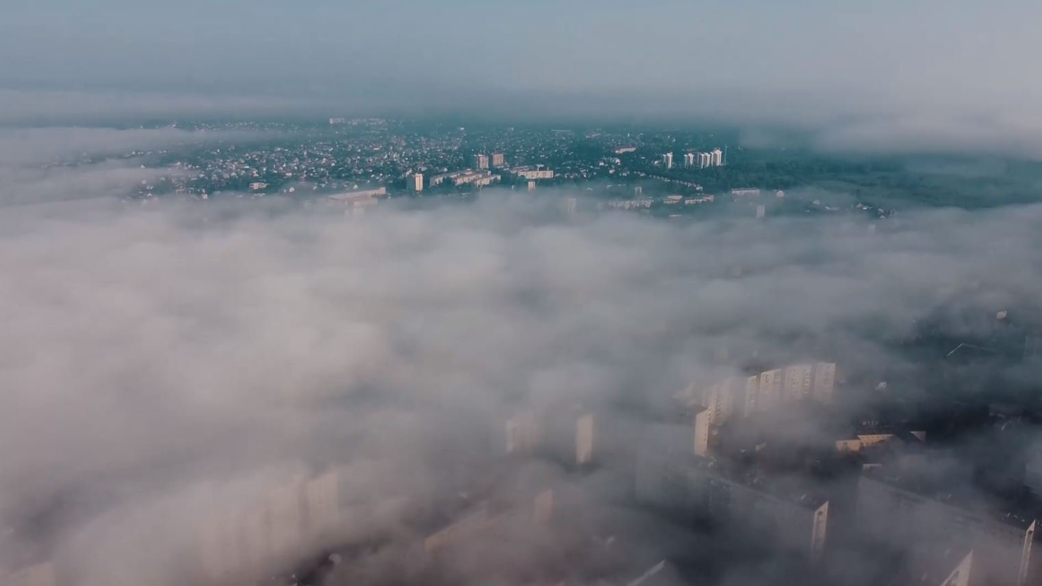 Космічні краєвиди: туманний ранок над мікрорайоном Луцька – з висоти польоту. Відео