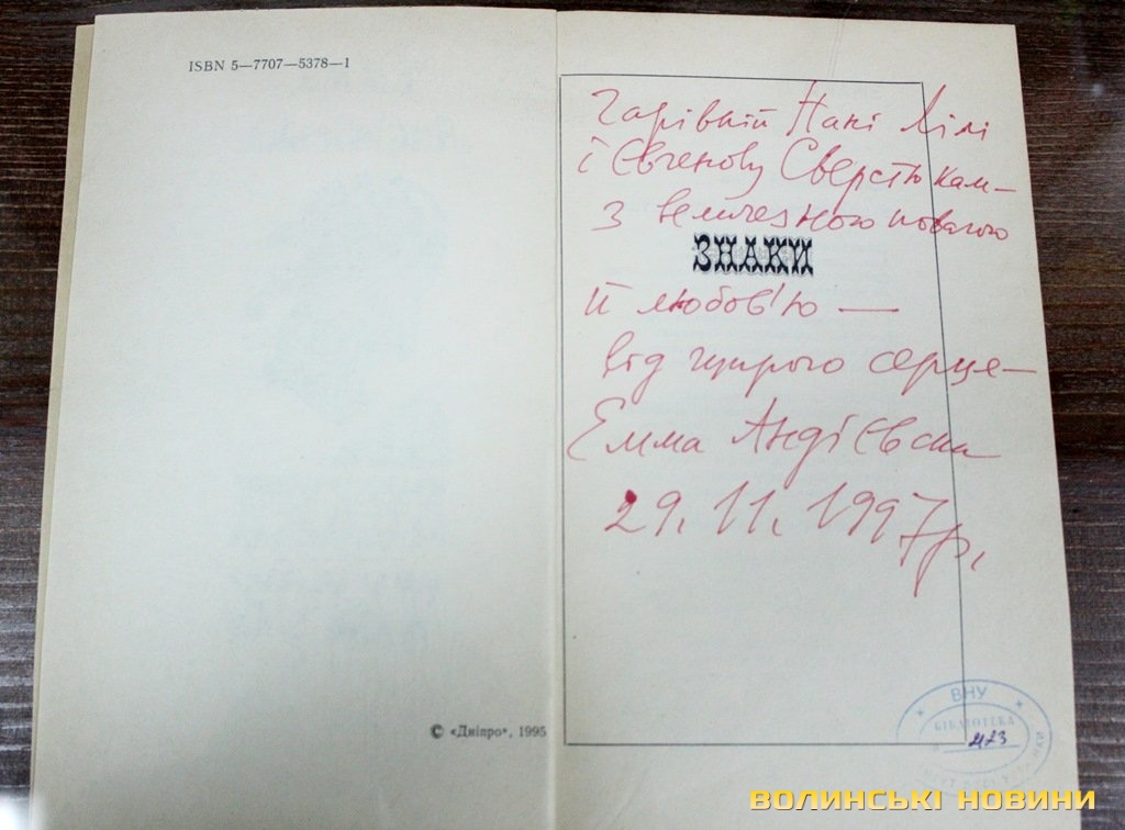 У Волинському національному університеті імені Лесі Українки презентували виставку робіт письменниці, поетеси та художниці Емми Андієвської. Побачити напрацювання авторки можна з 12 до 21 грудня у Музеї Лесі Українки (лабораторний корпус ВНУ).