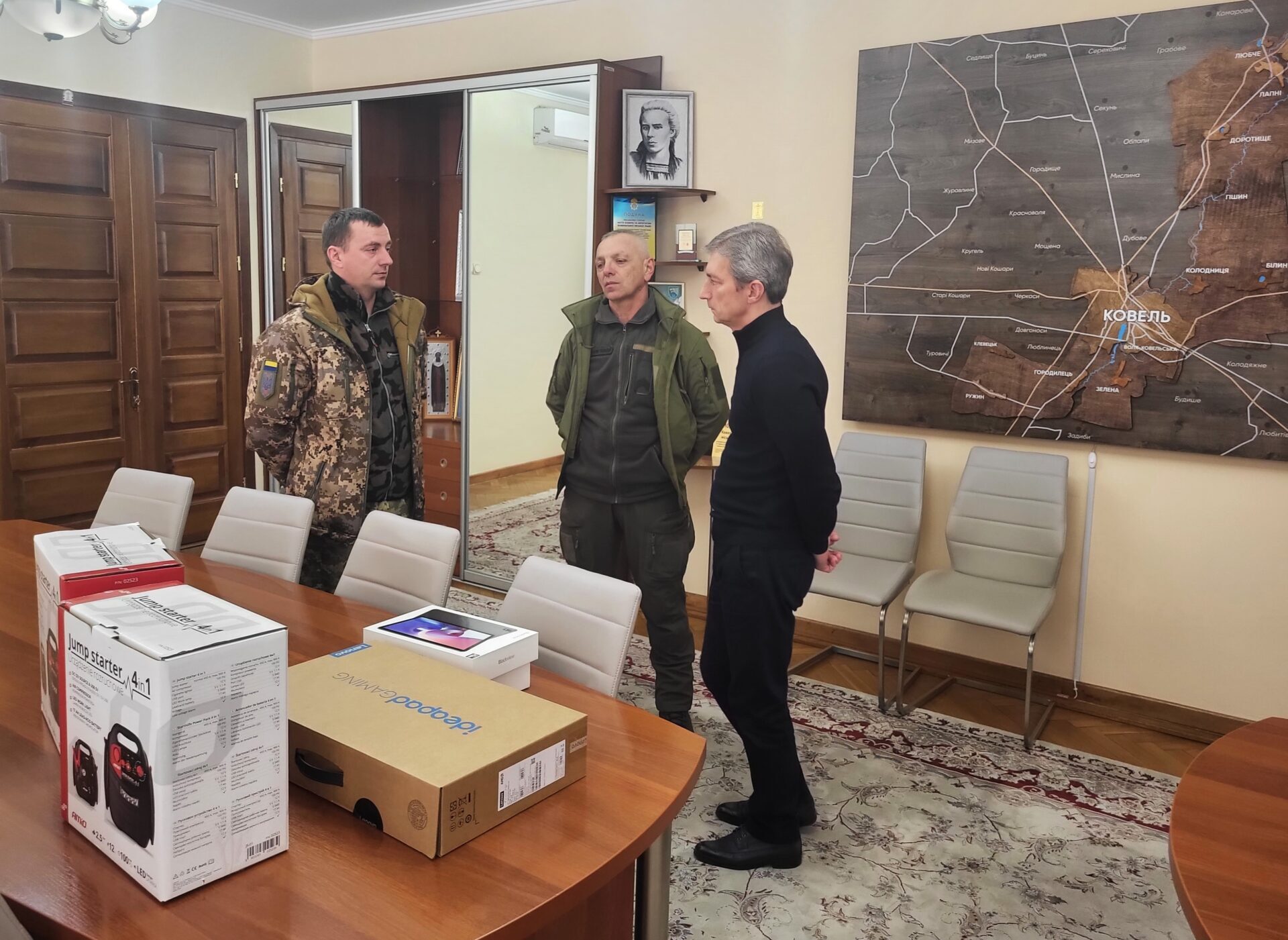 Комп’ютерну техніку, акумулятори до машин швидкої допомоги та зарядні пристрої до них від Ковельської громади отримали представники Волинського батальйону 141 -ї бригади. Зараз вони неподалік від Роботиного, на Запорізькому напрямку фронту.Читати ще: Мер Луцька із депутатами відвезли на схід військовим допомоги на 30 мільйонів