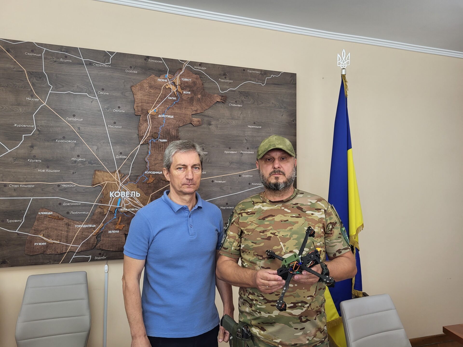 Як інформують у Ковельській міській раді, 19 вересня мер Ковеля Ігор Чайка передав від громади для підрозділу, в якому служить ковельчанин, три FPV-дрони.