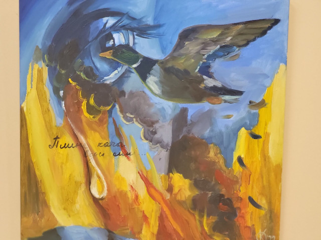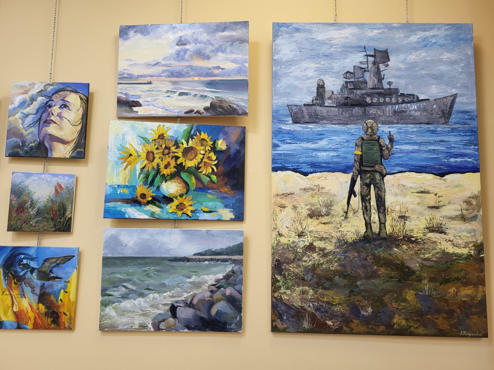 У залі можна побачити картини, створені до війни, але є й чимало написаних уже в нових реаліях сьогодення.
