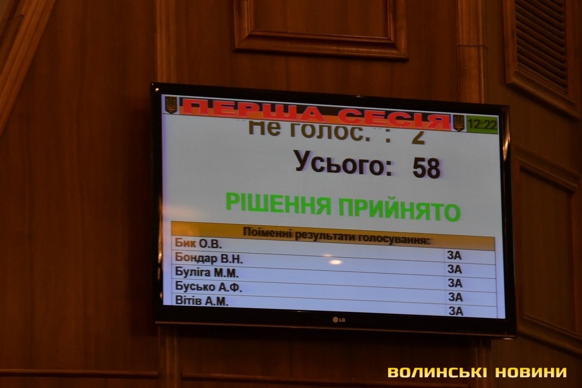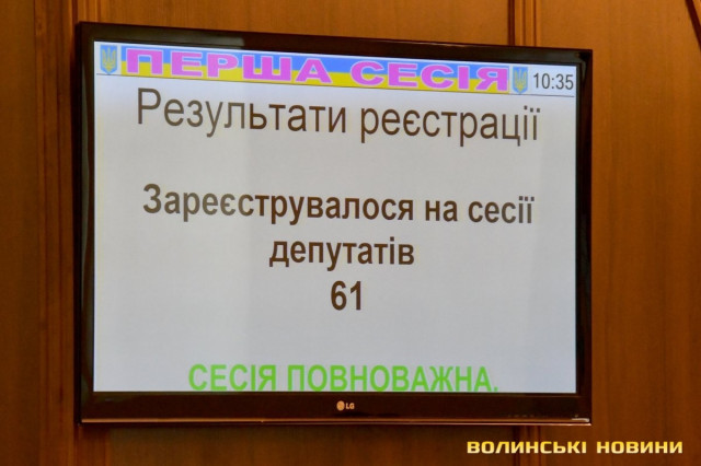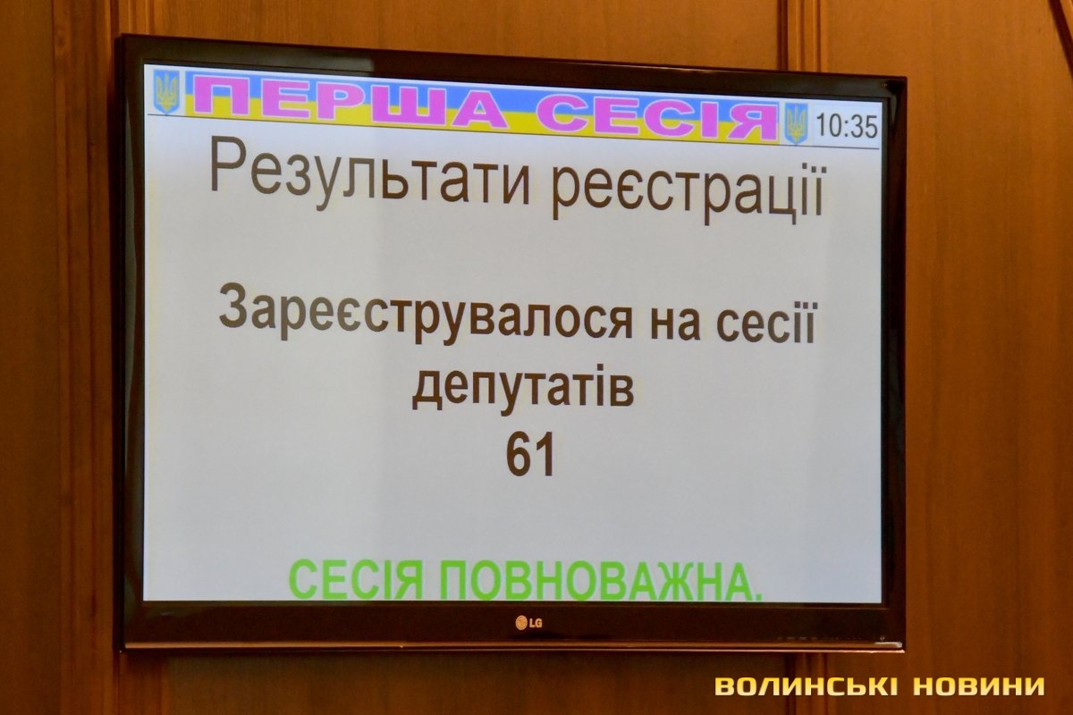 Волинські депутати, яких обрали на місцевих виборах до обласної ради, приступили до роботи. 25 листопада відбулася перша сесія облради VIII скликання. Із 64 обранців на засідання, під час якого вручали посвідчення, прибуло 62, двоє – не з’явилися.