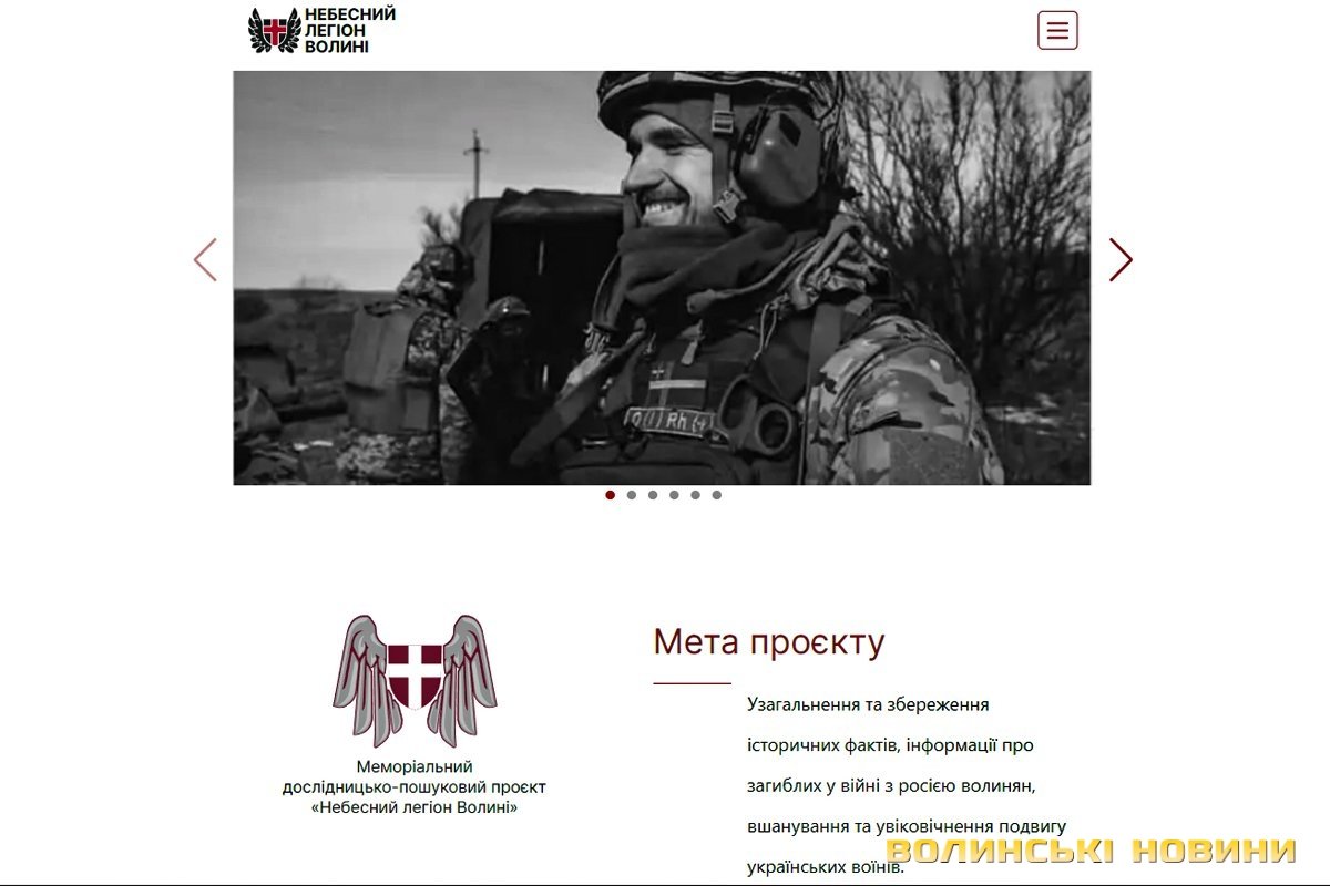 Понад 800 інформаційних довідок про загиблих військових зібрав сайт «Небесний легіон Волині». Його презентували ще в грудні 2023 року. Над пошуком інформації про Героїв-волинян працювали учні різних навчальних закладів області.