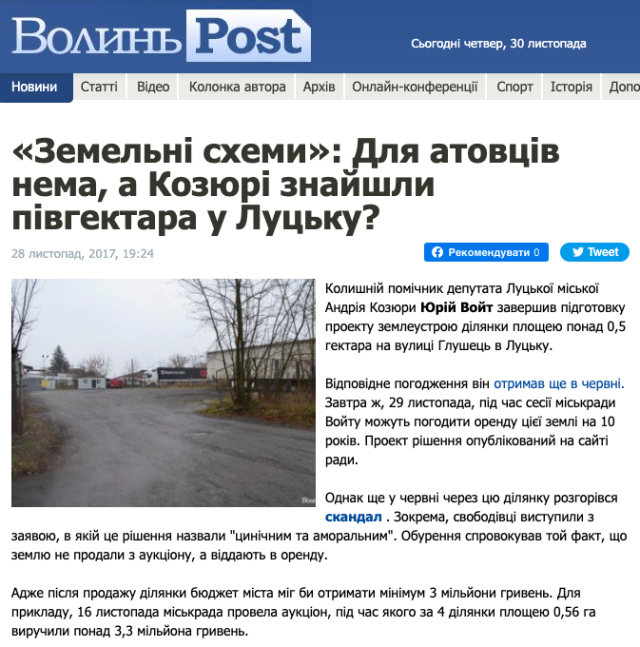 Козюра шантажем вимагає землю в Луцьку та дозвіл на багатоповерхівку: депутати «Батьківщини» звернулися до Юлії Тимошенко