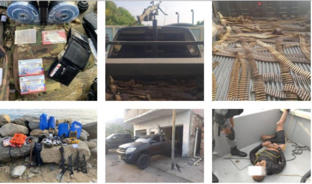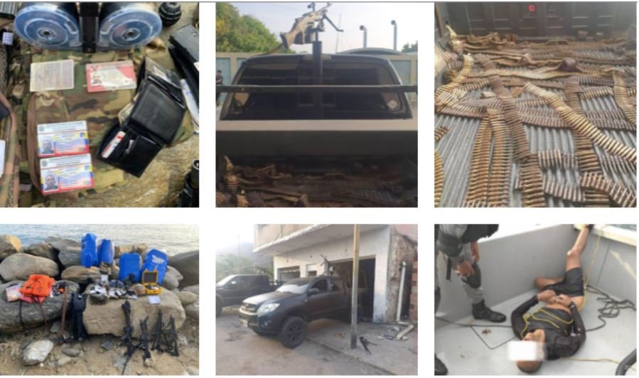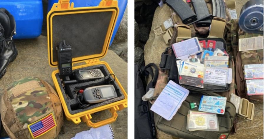 При убитих знайшли паспорти Перу, крупнокаліберну зброю, супутникові телефони, форму і каски з прапорами США. Найманці мали висадитися у портового місті Ла-Гуайра в 32 кілометрах від Каракаса, столиці Венесуели. Ймовірно, в Ла-Гуайри їх очікував транспорт і важке озброєння.