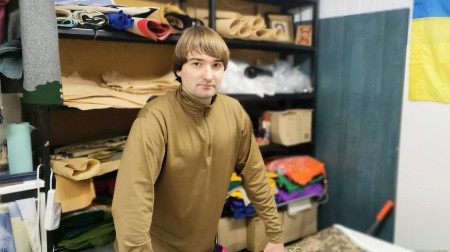 Як розповів Суспільному чоловік, торік наприкінці лютого кравцям було складно знайти тканину та фурнітуру. Тоді для пошиття використовували тканини захисних кольорів, які були в наявності.