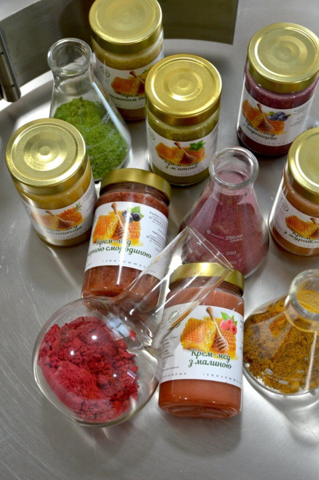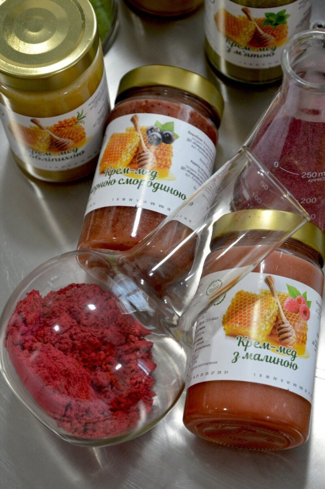 крем-мед, крем-мед з лимоном та імбиром, крем-мед з горіхами, крем-мед з малиною, крем-мед з чорницею, крем-мед з чорною смородиною, крем-мед з м’ятою, крем-мед з м’ятою та лимоном, крем-мед з корицею, крем-мед з журавлиною, крем-мед з ожиною, крем-мед з обліпихою, крем-мед з сосновими шишками.