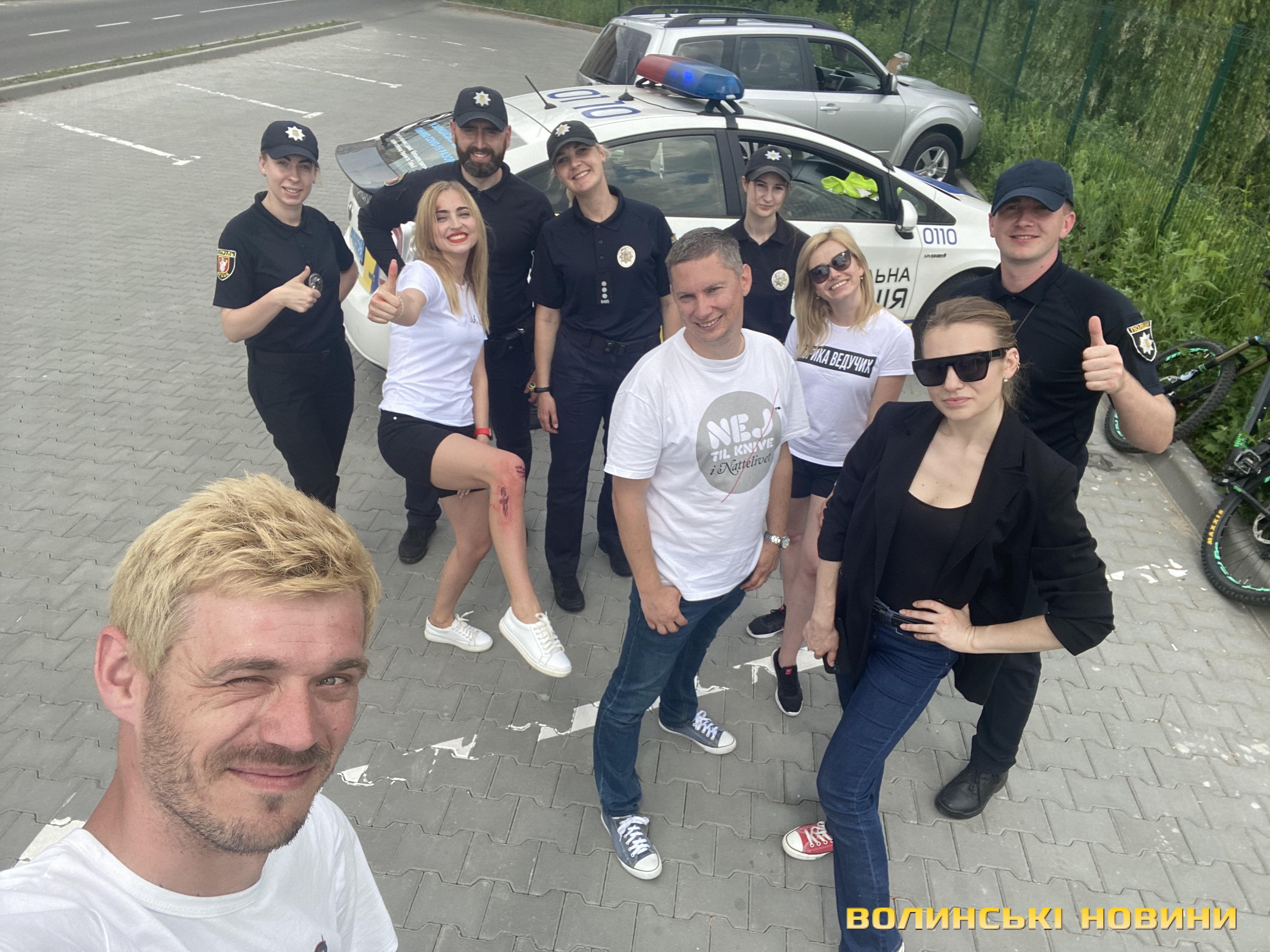 З її слів, у рамках флешмобу #безпекаценеіграшки, який працівники патрульної поліції організували ще до карантину, луцькі волонтери 16 червня зняли соціальний ролик про безпеку руху на дорогах. За основу сюжету молоді актори взяли саме ситуацію з велосипедистом.