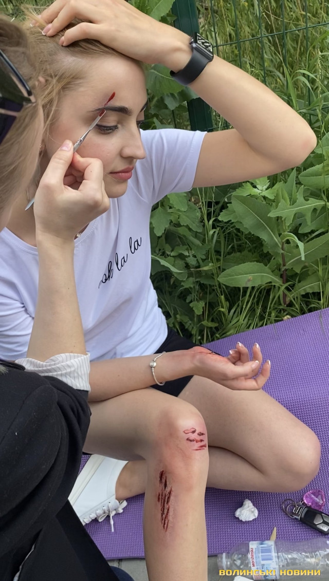 «За сценарієм я їхала на велосипеді, порушуючи правила дорожнього руху. Ми показували, як часто їздять люди і що потім з ними відбувається. Була ДТП, мене «збила» машина. Я лежала на асфальті, а гример намалювала мені кров та рани. Після цього епізоду ми зняли інший, у якому розповідали, як потрібно було діяти, аби уникнути біди. Після того, як ролик змонтують, ми плануємо розмістити його у соціальних мережах, зокрема, еа сторінці патрульної поліції тощо», - каже волонтерка.З її слів, готовий варіант відеоролика буде орієнтовно за тиждень.