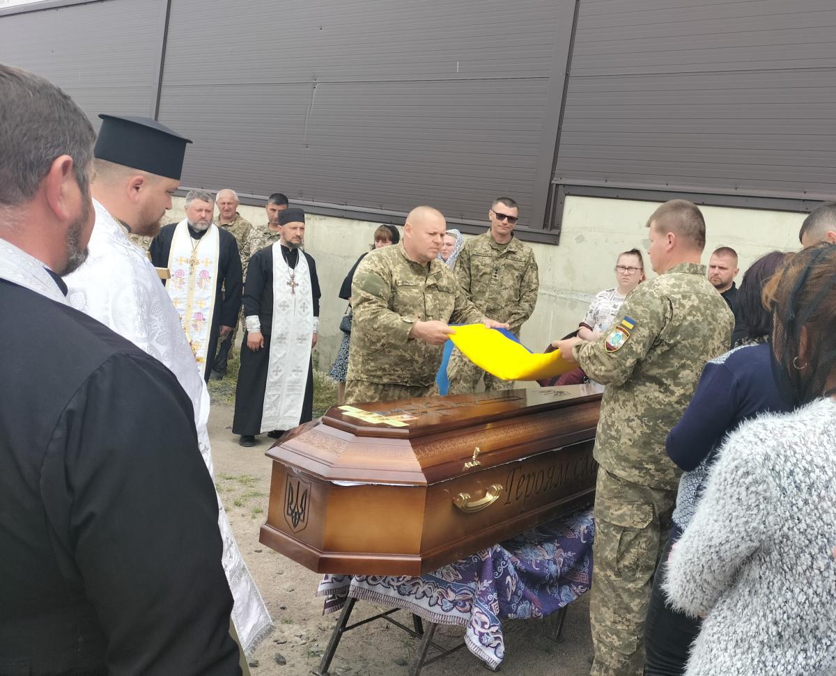 Останнє прощання, спільна молитва за невинно вбитого Героя і під пронизливий військовий салют рідна земля приймає тіло загиблого. Тепер він навічно з Небесною вартою...За народною традицією на цвинтарі розділили весільний хліб. Та гірчив він присмаком втрат, біди, невимовного людського горя, яке принесла нам ця війна.