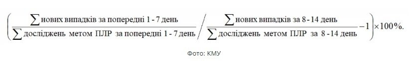 Останній показник (динаміка зростання випадків COVID-19) застосовується лише тоді, коли зареєстровано понад 8 випадків інфікування на 100 тис. населення сумарно за останні 7 днів, і розраховується за такою формулою:Що це змінює і які регіони залишаються осередками COVID-19 в Україні