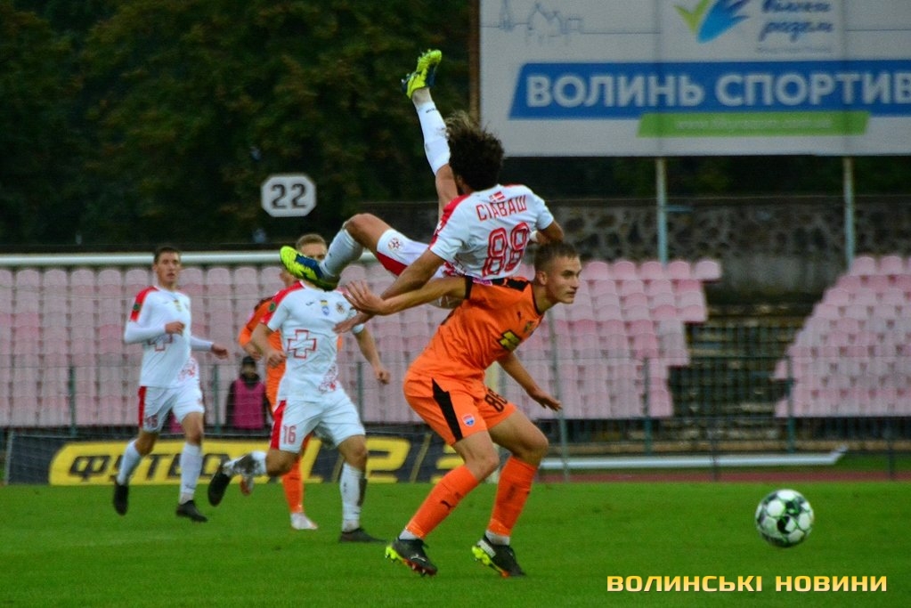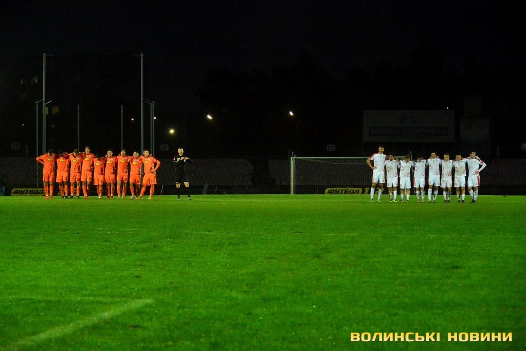 Без сумніву «Маріуполь» у статусі команди Прем’єр-ліги був фаворитом протистояння, відтак Альберт Шахов виставив на матч основний склад, зробивши лише декілька змін: місце у воротах зайняв Коркодим, а замість Кучеренка в опорній зоні вийшов Чепелюк.«Маріуполь» забрав м’яч під контроль на старті матчу, а перший небезпечний момент виник на 18 хвилині: Кащук обігрався з партнером на правому фланзі та навісив на Стасюка, але на удар головою останнього зреагував Коркодим. Однак активність маріупольців попереду все ж дала результат через три хвилини, щоправда не гольовий. Цюпу видалили за фол останньої надії на Топалові, адже той виходив віч-на-віч з голкіпером.Попри гру в меншості, лучани достойно виглядали на фоні вищого за класом суперника та до кінця тайму таки зберегли свої ворота сухими.