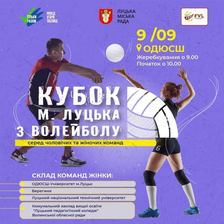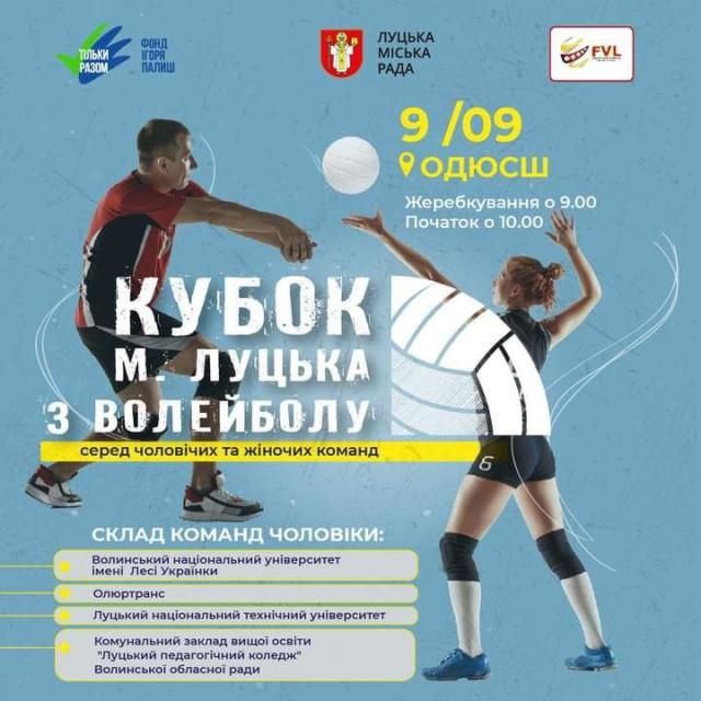 Екскурсії в музейному просторі «Окольний замок». Вхід із дворика коледжу університету харчових технологій | щодня з 10:00 до 19:00IT MEETUP від SoftServe у РЦ «Промінь» | 7 вересняТренінг «Управлінська звітність бізнесу — де ваші гроші?» від Ольги Іванків у центрі Дія.Бізнес | 7 вересняЗахід «Спортивні хроніки війни» на площі перед головним корпусом Університету імені Лесі Українки | 8 вересняВистава за драматичною поемою Лесі Українки «На полі крові» у Волинському академічному театрі імені Тараса Шевченка | 8 вересняЛекція «Історія створення бренду SHYPELYK» від Ольги Шипелик у центрі Дія.Бізнес | 8 вересняВелопробіг у вишиванках і акція «Українська вишиванка» на Театральному майдані | 9 вересняГурт «Діти Інженерів» у барі «Карабас Барабас» | 9 вересняКубок Луцька з волейболу серед чоловічих та жіночих команд у приміщенні Обласної дитячо-юнацької спортивної школи | 9 вересняФотовиставка робіт молоді з інвалідністю «Я люблю свою країну» в Луцькому зоопарку | 10 вересняДрама-інтерв’ю «Долі жіночі, або Послання від заробітчанок» у Волинському академічному театрі імені Тараса Шевченка | 10 вересняТеатралізована презентація мобільної виставки на території Жидичинського монастиря | 10 вересняВистава «Солом’яний бичок» у Волинському театрі ляльок | 10 вересняВідкрите тренування з лицарями в Луцькому замку | 12 вересняМелодраматична комедія «Замовляю любов» у Волинському академічному театрі імені Тараса Шевченка | 13 вересняAlyona Alyona в РЦ «Промінь» | 14 вересня