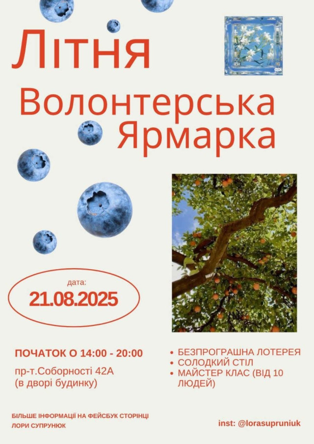 Лекція «Маркетинг без води: як залучати клієнтів і не згоріти у бізнесі» в центрі Дія.Бізнес | 14 серпняВоркшоп з акторства в «Окольному замку» | 14-16 серпняПриродо-терапевтична екскурсія Гнідавським болотом. Початок – від синагоги | 14 серпняCHEEV у комплексі GOSTI | 15 серпняОдноденний вишкіл для молоді. Реєстрація тут | 15 серпняВідкриття виставки «Художнє дерево у храмах Волині» в Музеї волинської ікони | 15 серпняПоетичний вечір у «Майстерні міста» | 15 серпняЛекція «Маркетплейс Etsy: як продавати товари за кордон і заробляти тисячі доларів» в центрі Дія.Бізнес | 15 серпняВідкриття виставки Євгенії Григорʼян «Сором» у Музеї Корсаків | 15 серпняЕкскурсія до Дня молоді луцькими муралами. Старт від Театрального майдану | 16 серпняЙога-сесія на центральному пляжі в парку імені Лесі Українки | 16 серпняКонцерт «Органна палітра століть» в костелі Святих Апостолів Петра і Павла | 17 серпня«Ветерани космічних військ» у РЦ «Промінь» | 19 серпняЛекція «Мистецтво пітчу: як зацікавити інвестора чи партнера» в центрі Дія.Бізнес | 20 серпняЛітня волонтерська ярмарка в дворі будинку 42а на пр. Соборності | 21 серпняГурт «Без Обмежень» у РЦ «Промінь» | 22 серпняКонцерт до Дня Незалежності в драмтеатрі | 23 серпня