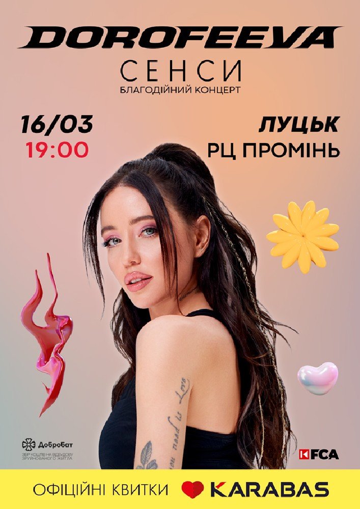 Благодійний концерт DOROFEEVA з новою програмою «СЕНСИ» у РЦ «Промінь» | 16 березняNirvana із симфонічним оркестром Tribute Show у Волинському академічному театрі імені Тараса Шевченка | 16 березняПрем’єра вистави «Нескорена» у Волинському академічному театрі імені Тараса Шевченка | 16 березняТренінг «Місія доросле життя: твій екскурс у самостійне майбутнє» від Молодіжного центру Волині та СпівДії хабу Луцька | 16-18 березняСтепан Гіга у Волинському академічному театрі імені Тараса Шевченка | 17 березняПремʼєра «Долі жіночі, або Послання від заробітчанок» у Волинському академічному театрі імені Тараса Шевченка | 17 березня«Друга ріка» у Палаці культури міста Луцька | 18 березняЮліан Чаплінський презентує книгу «Зрозуміти архітектуру» в Музеї сучасного українського мистецтва Корсаків | 18 березняВистава «Попелюшка» у Волинському театрі ляльок | 18 березняЗахід «Into The Unknown: молодіжні обміни та можливості навчання за кордоном» від Молодіжного центру Волині та СпівДії хаб Луцьк | 18 березняВистава «Лесина містерія» у Волинському академічному театрі імені Тараса Шевченка | 18 березняВистава «Котигорошко» у Волинському академічному театрі імені Тараса Шевченка | 19 березняПремʼєра «Хай живе любов» у Волинському академічному театрі імені Тараса Шевченка | 19 березняВистава «Стійкий оловʼяний солдатик» у Волинському театрі ляльок | 19 березня