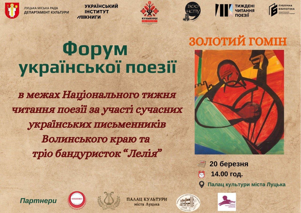 Волинські Новини розповідають лучанам про культурні події, які очікують їх протягом цього тижня – від 19 березня до 26 березня.