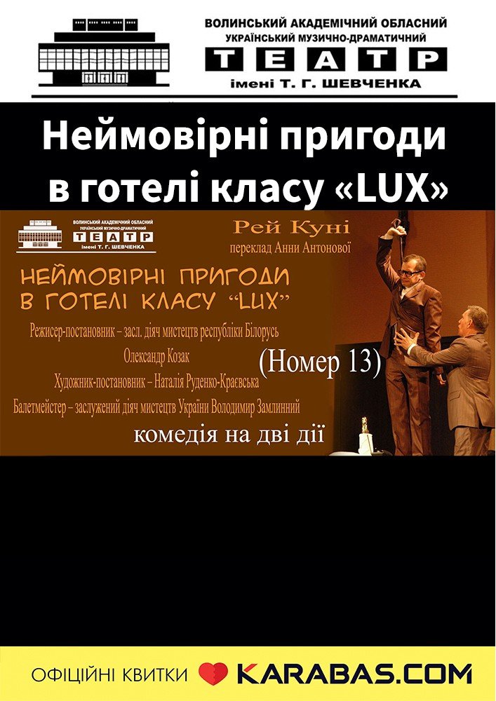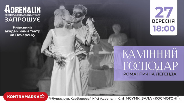 Лекція «HR маркетинг в дії» від Олени Кіріченко в центрі Дія.Бізнес | 26 вересняКонцерт «Струнний квартет артистів оркестру» у драмтеатрі імені Тараса Шевченка | 27 вересняSHUMEI в драмтеатрі імені Тараса Шевченка | 27 вересняЕкскурсія «На побачення з містом». Зустріч у сквері Королеви Анни | 27 вересняВоркшоп «Говори» в Музейному просторі «Окольний замок» | 27 вересняВистава «Камінний господар» у театрі Adrenalin | 27 вересняКомедія «Шахрайки» в драмтеатрі імені Тараса Шевченка | 28 вересняСольний стендап-концерт Богдана Боярина в просторі «Культурне укриття» | 28 вересняВистава «Ріпка, або Казка на городі» в театрі ляльок | 28 вересняДень Гобіта в бібліотеці імені Олени Пчілки | 28 вересняЗахід у Молодіжному центрі Волині | 28 вересняВідкриття унікального мистецького проєкту «КОСМОГОНІЯ» в музеї Корсаків | 28 вересняВсеукраїнські змагання з літнього біатлону серед юнаків та дівчат | 28-29 вересняКомандні змагання серед ветеранів війни в рамках сезону проєкту «Звитяга нескорених» у Луцьку | 29 вересняКомедія «Неймовірні пригоди в готелі класу LUX» у драмтеатрі імені Тараса Шевченка | 29 вересняВистава «Казковий день Лілеї» у драмтеатрі імені Тараса Шевченка | 29 вересняВистава «Як горобець розуму шукав» у театрі ляльок | 29 вересняКонцерт «Івасюк назавжди» у драмтеатрі імені Тараса Шевченка | 30 вересняКонцерт фортепіанної музики в музичній школі №1 | 30 вересняКонцерт-вистава «При варті» у драмтеатрі імені Тараса Шевченка | 1 жовтняВиставка робіт «Малюю Перемогу! Дякую Герою!» в бібліотеці для юнацтва | 1 жовтняВоркшоп від Тетяни Кравець в центрі Дія.Бізнес | 1-3 жовтняДрама інакшості «Фрекен Жюлі» у драмтеатрі імені Тараса Шевченка | 2 жовтняWellBoy в драмтеатрі імені Тараса Шевченка | 2 жовтняКонцерт Domiy в РЦ «Промінь» | 3 жовтняФранцузька комедія «Оскар, або Скажена авантюра» у драмтеатрі імені Тараса Шевченка | 3 жовтня