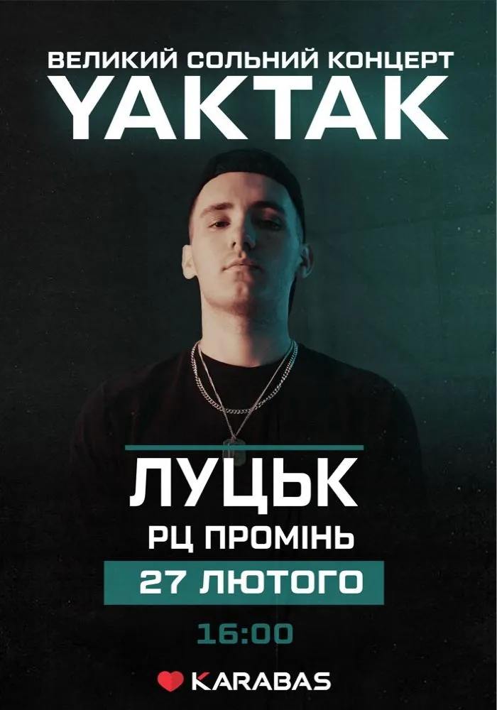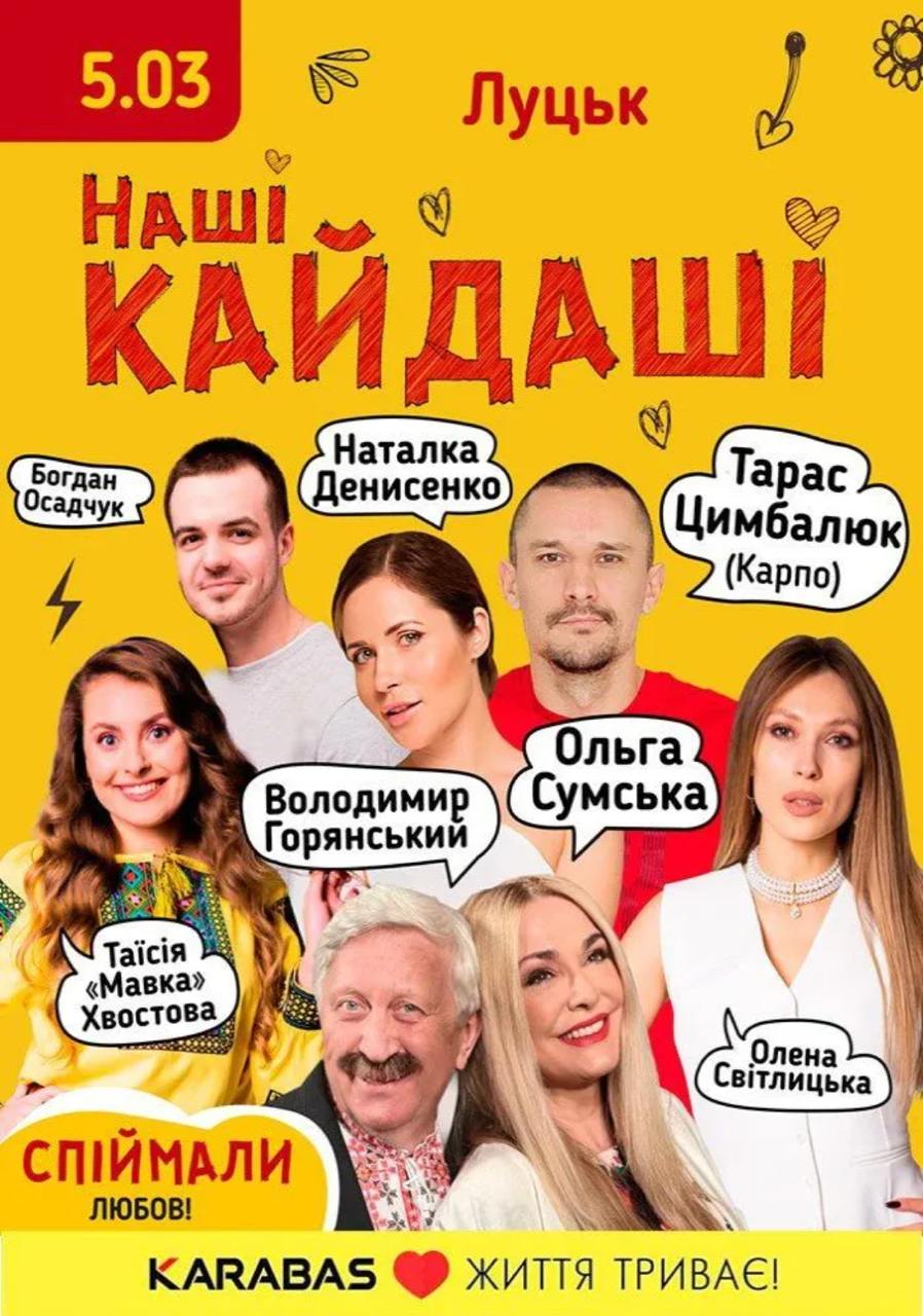YAKTAK у РЦ «Промінь» | 27 лютогоПрактикум «Інструменти штучного інтелекту» в РМВА Бізнес-Академія | 27 лютогоЗахід «Пиши» в бібліотеці для юнацтва | 28 лютогоМелодраматична комедія «Замовляю любов» у драмтеатрі імені Тараса Шевченка | 28 лютогоКонцерт у музичній школі № 1 імені Фридерика Шопена | 1 березняВистава «Зоряні колисанки» в театрі ляльок | 1 березняСемінар «Емоційний інтелект у дії: як спілкуватися усвідомлено» в Бібліотеці-філії №10 | 1 березняВистава «Журавлик, який не хотів журитися» в мистецькому просторі «Ангар» | 1 березняАнна Трінчер із концертом «У серці багато пожеж» у РЦ «Промінь» | 1 березняВистава «Хто росте у парку» в театрі ляльок | 1, 2 березняПрем'єра документального фільму «Любарт 2024». Реєстрація тут | 2 березняМайстерклас «Stop-motion анімація» від медіа школи Cool Media School на вулиці Прогресу, 7 | 2 березняЕкскурсія «Стежками Лесі Українки». Збір на Замковій площі, поруч із Луцьким Верхнім замком | 2 березняGREEN ART виставка в Музейному просторі «Окольний замок» | 2 березняТворчий майстерклас «Зустріч весни» в бібліотеці «ДІМ» | 2 березняАСАФАТОV у ЛНТУ | 2 березняЛекція від гінеколога про гормони, харчування про профілактику хвороб. Реєстрація тут | 2 березняЛекція «Цінності споживачів: як продати дорожче» в центрі Дія.Бізнес | 3 березняЗаходи з нагоди 154-річчя від дня народження Лесі Українки та Дня Університету у ВНУ | 3, 4 березняВиставка World Press Photo 2024 у Музеї Корсаків | 4 березняКомедія «Шалений дівич-вечір» у драмтеатрі імені Тараса Шевченка | 4 березняЛекція «Як обрати блогера та правильно розподілити бюджет?» в центрі Дія.Бізнес | 4 березняКомедія «Наші Кайдаші» у драмтеатрі імені Тараса Шевченка | 5 березняКонцерт Сергія Піскуна в РЦ «Промінь» | 6 березня