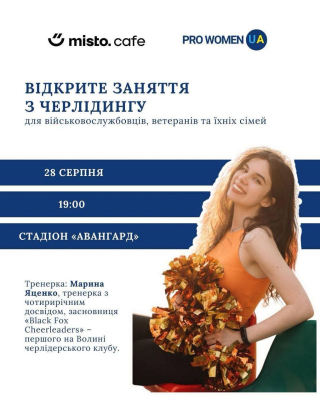 Подія «Мистецтво наїву. Луцький контекст» у Центрі розвитку креативних індустрій «Або Або» | 28 серпняБлагодійна гра в бункері-броварні «Карабас Барабас» | 28 серпняПрезентація дослідження «Перехід» та практичний воркшоп зі створення багаторічної клумби в Майстерні міста | 28 серпняВідкрите тренування з черлідингу на стадіоні «Авангард» | 28 серпняХор «Гомін» у РЦ «Промінь» | 29 серпняВистава «РЕБЕЛІЯ» від МУР у драмтеатрі імені Тараса Шевченка | 29 серпняЛекція «Як бути поряд» від Lubart Foundation у misto.cafe | 29 серпняПерформенс плейбек-театру «На Варті» в театрі ляльок | 30 серпняSunset Party в заміському комплексі Gosti | 30 серпняСімейний фестиваль повітряних зміїв. Ukraine Housing Lutsk (між Жидичином і Княгининком, у заплаві річки Стир) | 30 серпняДжазовий фестиваль ART JAZZ у бізнес-просторі на вул. П’ятницька Гірка, 2 | 31 серпняКонцерт «Резонанс душі» в костелі Святих Апостолів Петра і Павла | 31 серпняLIVE Формула-1 у misto.cafe | 31 серпняЗустріч «Турбота про себе без почуття провини» із психологинею Неонілою Кухарук на стадіоні «Авангард» | 2 вересняЛекція «Як власнику бізнесу вийти з ментального хаосу?» в центрі Дія.Бізнес | 2 вересняKalush Orchestra в Палаці культури | 3 вересняСюрреалістична комедія «Перший раз» у драмтеатрі імені Тараса Шевченка | 3 вересня