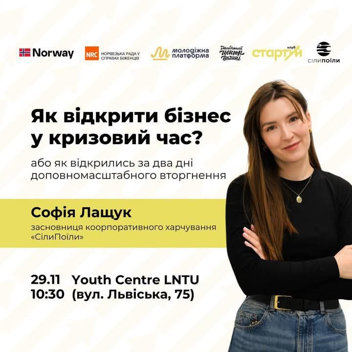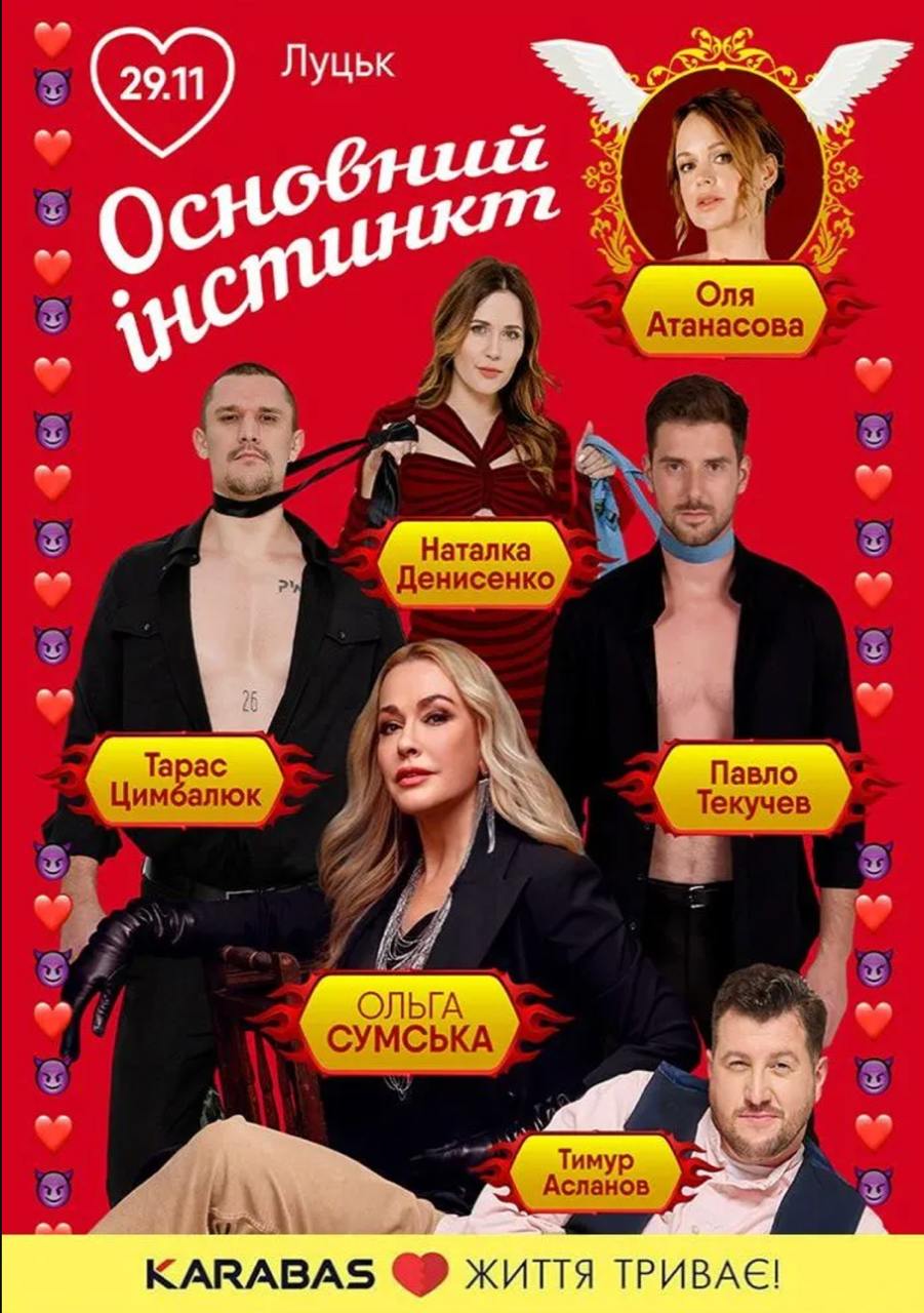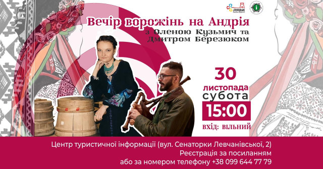 Воркшоп «Бізнес просмажка» в центрі Дія.Бізнес | 28 листопада«Цвях» у Mik Studio | 28 листопадаСпівачка і блогерка KRISTONKO в РЦ «Промінь»| 29 листопадаВистава «Зоряні колисанки» у театрі ляльок | 29 листопадаДрама «Не шукайте щастя, бо я його вкрав» у драмтеатрі імені Тараса Шевченка | 29 листопадаВистава «Основний інстинкт» у драмтеатрі імені Тараса Шевченка | 29 листопадаЗустріч «Як відкрився бізнес за два дні до повномасштабного вторгнення?» в Youth Centre LNTU | 29 листопадаВідкриття виставки «Репліки костюмів доби гетьмана Івана Мазепи з музеїв України» в «Окольному замку» | 29 листопадаВідкриття виставки «Космос Емми Андієвської» в межах проєкту «Космогонія» в музеї Корсаків | 29 листопадаАндріївські вечорниці в будинку культури селища Рокині | 29 листопадаЛекція «Гранти: шлях до успіху» в центрі Дія.Бізнес | 29 листопадаНоворічна казка «Закоханий друг Святого Миколая і Санти» у драмтеатрі імені Тараса Шевченка | 30 листопадаВистава «Підкова на щастя» у театрі ляльок | 30 листопадаКомічна опера «Наталка Полтавка» у драмтеатрі імені Тараса Шевченка | 30 листопадаКонцерт «Пори року» в Палаці культури | 30 листопадаЛекція «Про зміни станів та комунікацію». Реєстрація тут | 30 листопадаВечір ворожінь на Андрія в Центрі туристичної інформації | 30 листопадаВистава «Казка про козацький рід» у театрі ляльок | 1 грудняРіздвяна казка «Піколетто» у драмтеатрі імені Тараса Шевченка | 1 грудняВистава «Номер 13. Неймовірні пригоди в готелі класу LUX» у драмтеатрі імені Тараса Шевченка | 1 грудняLinkin park tribute show у Mik Studio | 1 грудняФелікс Редька «Цирк на дроті» в Палаці культури | 3 грудняJamala в РЦ «Промінь» | 3 грудняЛекція «Секрети Google реклами: стабільний потік клієнтів для вашого бізнесу» в центрі Дія.Бізнес | 3 грудня