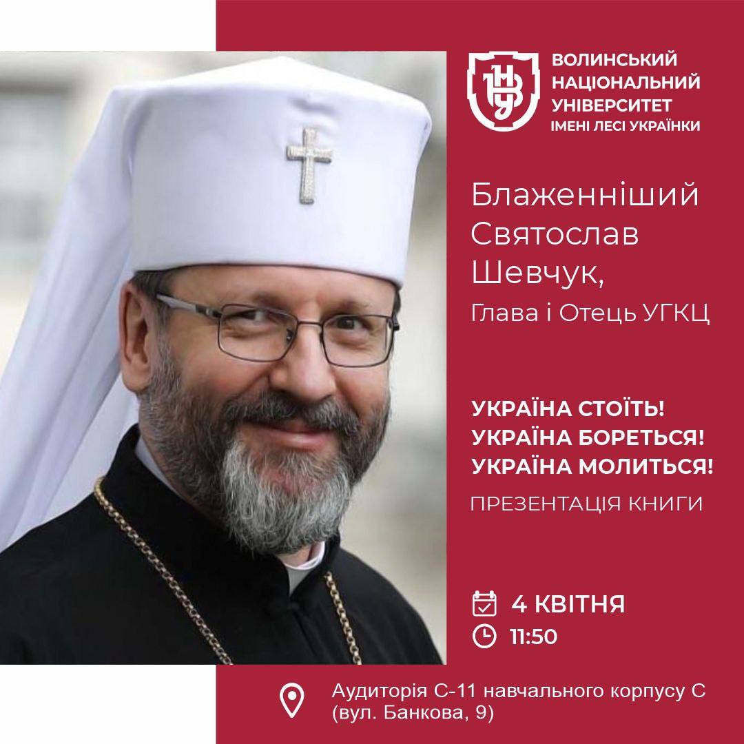 Концерт Parfeniuk в РЦ Промінь | 3 квітняПлей-оф баскетбольної Суперліги у Волинській обласній ДЮСШ | 4 квітняПрезентація книги глави УГКЦ Святослава Шевчука «Україна стоїть! Україна бореться! Україна молиться!» у Волинському національному університеті | 4 квітня