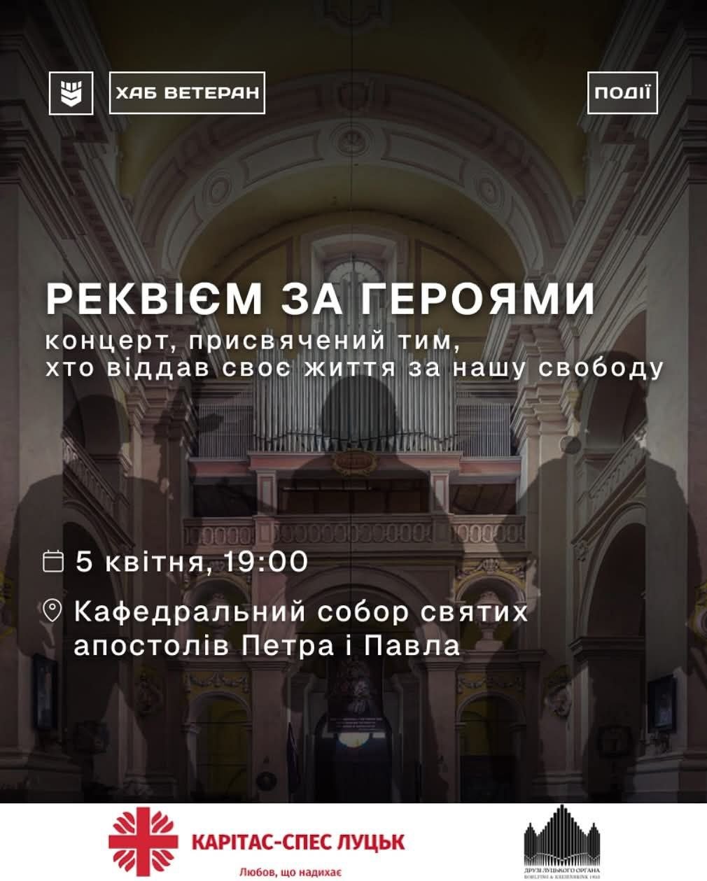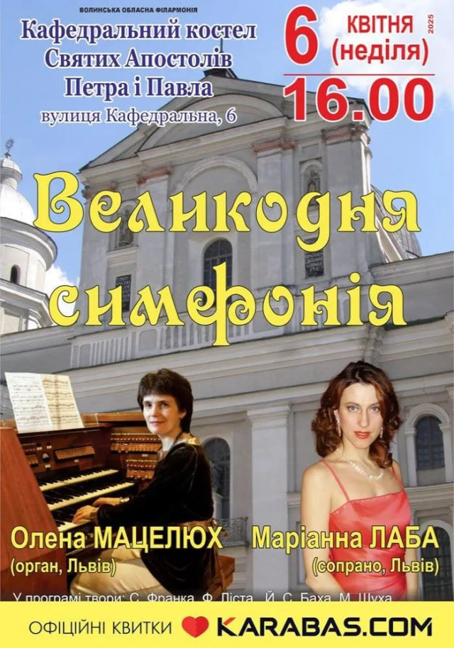 4 квітняВистава «Русалонька» у Волинському обласному театрі ляльок | 5 квітняОрганний концерт, присвячений Героям, у Кафедральному соборі святих апостолів Петра і Павла | 5 квітняТематичний вечір настільних ігор у бібліотеці імені Олени Пчілки | 5 квітняТренування з ампфутболу у спорткомплексі «Динамо» | 5 квітняВоркшоп з безбар’єрності: дослідження доступності аптек. Реєстрація тут | 6 квітняВиставки картин Руслана Кашаюка у Волинському обласному театрі ляльок | 6 квітняМатч ФК «Любарт» проти SkyUP Futsal у Волинській обласній ДЮСШ | 6 квітняВистава «Лісовий цирк» у Волинському обласному театрі ляльок | 6 квітняВистава «Казка про рудого чорта та козацький рід» у Волинському обласному театрі ляльок 6 квітняВеликодня симфонія у Кафедральному соборі Святих Апостолів Петра і Павла | 6 квітняВистава «Ladies’ Night» у Волинському облмуздрамтеатрі | 7 квітняВистава «Квартал червоних ліхтарів» у Волинському облмуздрамтеатрі | 8 квітня