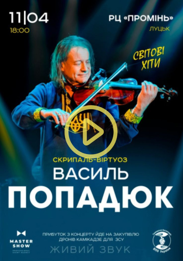 Василь Попадюк у РЦ «Промінь» | 11 квітняЧорна комедія «Той, що відчиняє двері» у драмтеатрі імені Тараса Шевченка | 12 квітняПаліндром у Versailles Club | 12 квітняKOLA у РЦ «Промінь» | 12 квітняПрезентація проєкту «ВІЛЬНІ ЛЮДИ» у Музейному просторі «Окольний замок» | 12 квітняАкадемічний камерний оркестр «Кантабіле» в Лютеранській кірсі | 12 квітняТеатральний марафон у театрі ляльок | 12-13 квітняДрама «Століття Якова: перше кохання» у драмтеатрі імені Тараса Шевченка | 13 квітняKOZAK SYSTEM у РЦ «Промінь» | 13 квітня«Веселі пригоди на лісовій галявині» в театрі ляльок | 13 квітняЗустріч з Олександром Терещенком у головному корпусі ВНУ | 13 квітняЕкскурсії з істориком: місто королеви, митників, князів, режисерів і митців – місто Ковель від PRO WOMEN UA | 13 квітня«Лісапетний батальйон» у Палаці культури | 14 квітняКазка для дітей «Лис Микита» у драмтеатрі імені Тараса Шевченка | 14 квітняWhite Ward у MIK Studio | 14 квітняМюзикл «Життя в кредит. Едіт Піаф» у драмтеатрі імені Тараса Шевченка | 14 квітняВистава «Стійкий олов’яний солдатик» у театрі ляльок | 14 квітняМайстерклас «Кондитер» | 14 квітняЕкскурсія «Мурали – мистецтво нашого міста» від Театрального майдану | 15 квітняЛекція «Ефективність подкастів та відеоконтенту у розвитку бізнесу» в центрі Дія.Бізнес у Луцьку | 15 квітняНаталія Могилевська з виставою «Доньки» в драмтеатрі імені Тараса Шевченка | 16 квітняDakh Daughters у драмтеатрі імені Тараса Шевченка | 17 квітняКомедійний трилер з елементами мелодрами «Мільйон парашутиків» у драмтеатрі імені Тараса Шевченка | 17 квітня