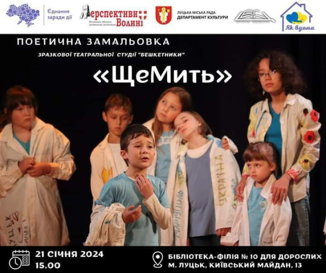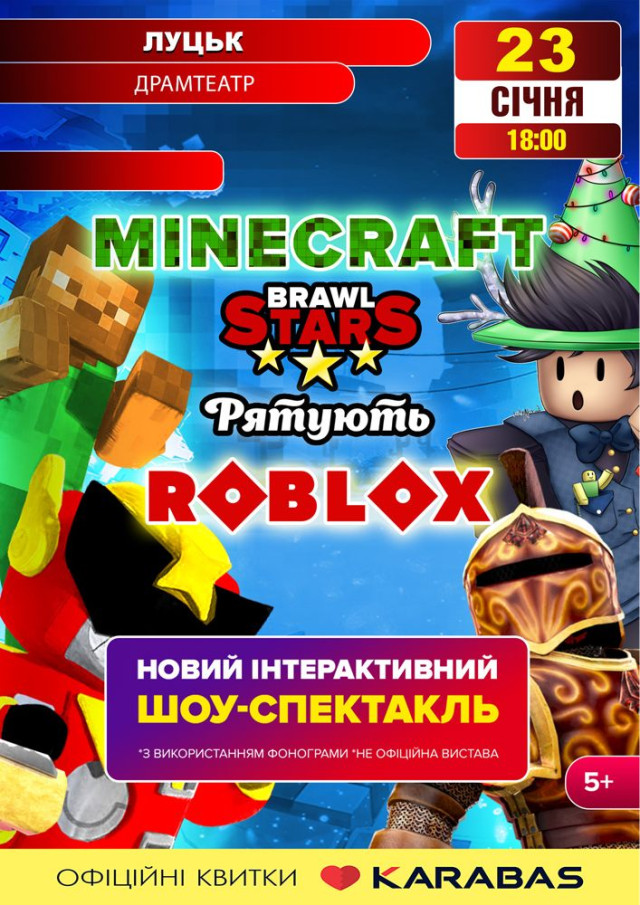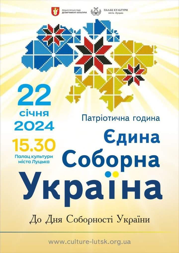 Патріотична година «Єдина соборна Україна» в Палаці культури міста Луцька | 22 січня Шоу-спектакль «Minecraft та Brawl Stars рятують Roblox» у Волинському академічному театрі імені Тараса Шевченка | 23 січня«На полі крові» у Волинському академічному театрі імені Тараса Шевченка | 24 січняВіктор Павлік у заміському комплексі Gosti | 25 січня«Фіолет» з акустичною програмою у Волинському академічному обласному театрі ляльок | 27 січня