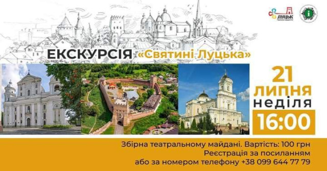 Mind Game в «Карабасі Барабасі» | 18 липняПрезентація книги Любові Ковальчук у бібліотеці для юнацтва | 19 липняAdam у заміському комплексі Gosti | 19 липняВідкриття офісу та навчального хабу проєкту «Місце надії України» (проспект Волі, 27) | 19 липняБлагодійний забіг пам’яті Романа Гаврилюка в центральному парку | 21 липня«Активні парки – забіг Луцька» | 21 липняЕкскурсія «Святині Луцька» від Театрального майдану | 21 липняЗустріч із Любою Деркач у книгарні «Є» | 23 липняЛекція «AirTable: альтернатива Excel та CRM» від Влада Присяжнюка в центрі Дія.Бізнес | 23 липняMusic show Anime. Part 1 у РЦ «Промінь» | 26 липняМіша Крупін у заміському комплексі Gosti | 26 липняIV Міжнародний літературний фестиваль «Фронтера» в Музейному просторі «Окольний замок» | 27-28 липняVI Волинський фестиваль органної музики Luchesk organium у костелі Святих Апостолів Петра і Павла | 28 липня