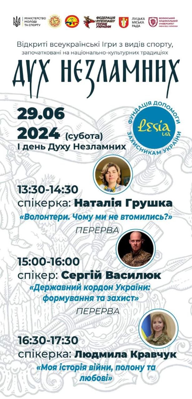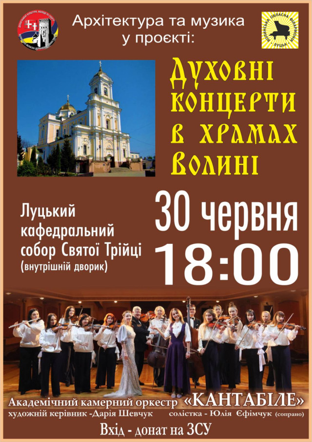 YAKTAK у РЦ «Промінь» | 27 червняЧорна комедія «Той, що відчиняє двері» в музично-драматичному театрі імені Тараса Шевченка | 27 червняПрем’єра фільму «Місія 200» в музично-драматичному театрі імені Тараса Шевченка | 27 червняПоказ фільму «Євродонбас» у просторі «Плюс Плюс» | 28 червняВистава «Попелюшка» в театрі ляльок | 29 червняЛекція «Суспільна діяльність єзуїтів та архітектура колегіумів» у Музейному просторі «Окольний замок» | 29 червняLutsk Fashion Weekend SS2024 на полі «Волинська лавандія» | 29 червняФестиваль національних бойових мистецтв «ДУХ незламних» в музеї-скансені в Рокинях | 29-30 червняВистава «Ріпка, або Казка на городі» в театрі ляльок | 30 червняМузична казка-фентезі «Аліса. Повернення в дивокрай» в музично-драматичному театрі імені Тараса Шевченка | 30 червняКонцерт «З Україною в серці» в музично-драматичному театрі імені Тараса Шевченка | 30 червняЛекція з елементами тренінгу «Домашнє та гендерно зумовлене насильство» в «Оранті» | 30 червняБлагодійний концерт у кафедральному соборі | 30 червняЖанна Лтавська в Палаці культури | 3 липняГурт «Один в каное» в РЦ «Промінь» | 4 липня