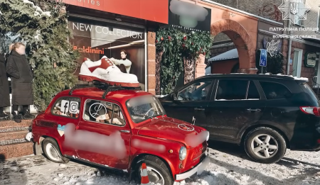 Червоний «Запорожець» із черевиком на даху давно став звичним і яскравим елементом центру міста. Тепер ця рекламна інсталяція магазину Lamark серйозно понівечена – в неї на швидкості врізався автомобіль. Раритетну, але вже розбиту машину власники магазину забрали додому.