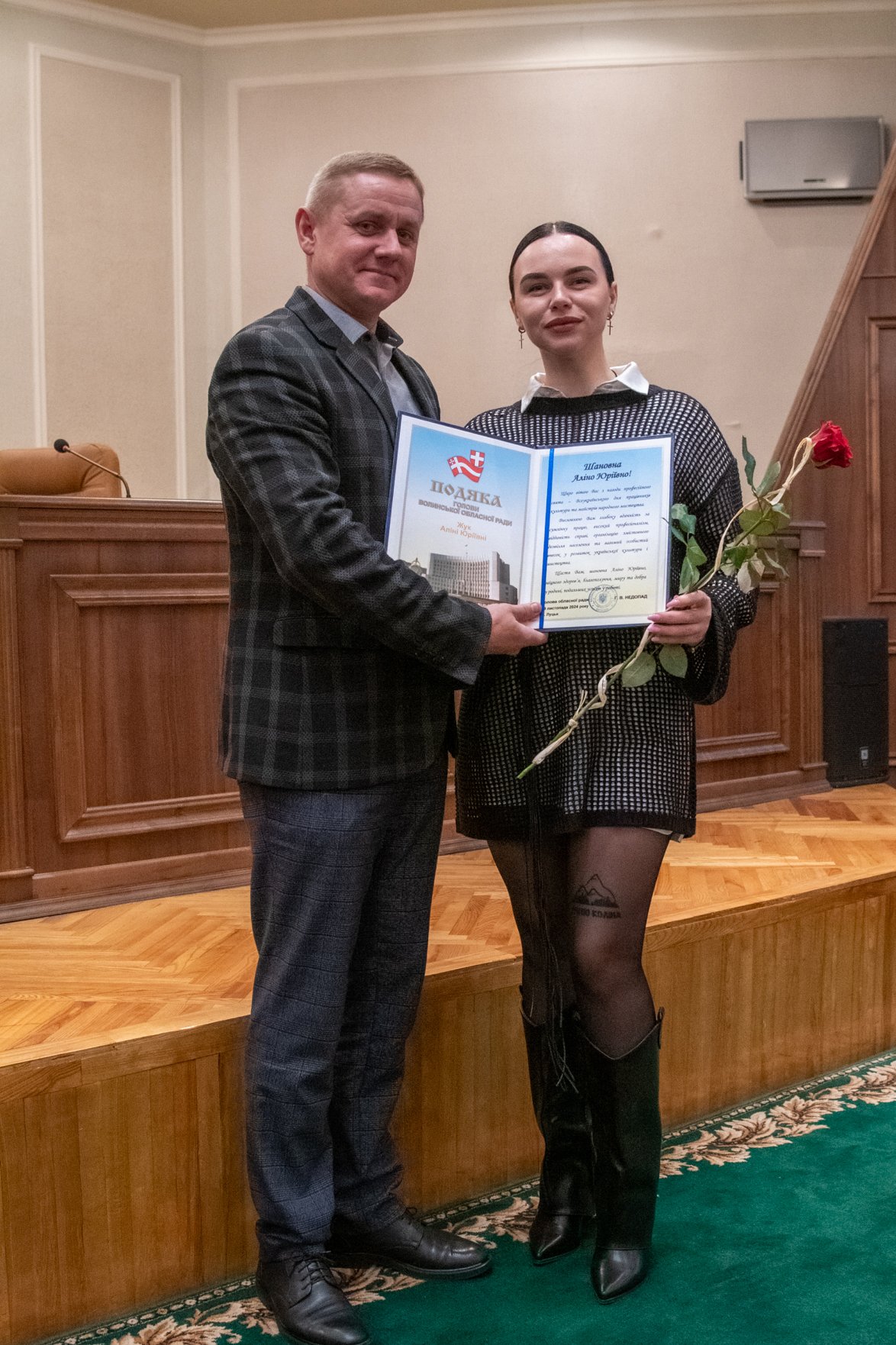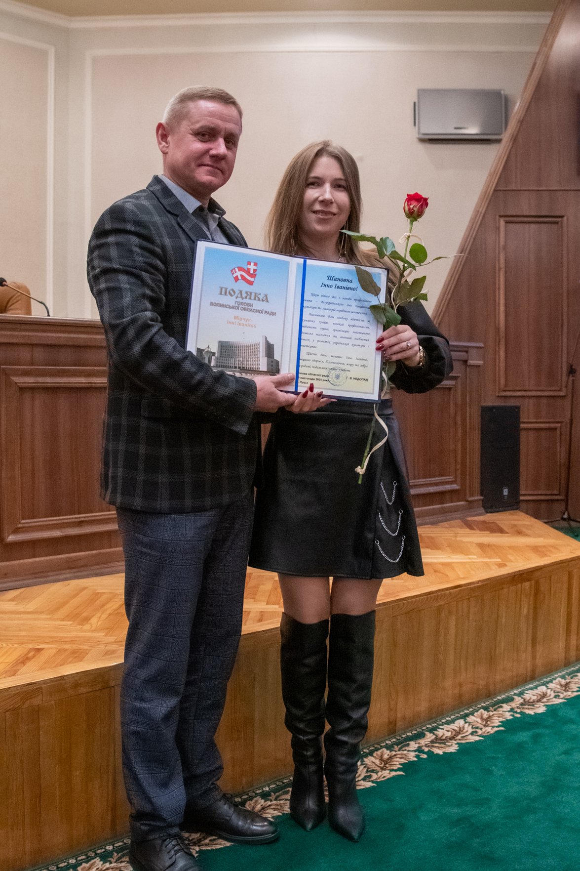«Споконвіку українська пісня, мова, танець були виразниками національної ідеї і оберегом історичної пам’яті. Саме українська народна культура і сформувала сучасну українську націю. Свого часу саме культурницький період, коли творили Леся Українка, Олена Пчілка, Іван Франко, Тарас Шевченко та інші, із народної творчості сформувалась класична українська культура, яка передала естафету борцям за нашу державність та незалежність. Ви направду є хранителями найціннішого скарбу, який у нас є. На моє переконання, держава має визначати первинною не економіку, а саме українську культуру і всіляко підтримувати її. Адже нинішня війна – це боротьба за нашу ідентичність та самобутність. У галузі культури працюють люди, які одержимі своєю важливою місією, які, не зважаючи на особисті проблеми та час і мізерні заробітні плати, наполегливо творять наше майбуття. Не забувайте, що ви сьогодні виконуєте надзвичайно важливу роль, адже додаєте натхнення для боротьби і зміцнюєте віру в неминучу українську перемогу», – наголосив він.Юрій Поліщук також вручив почесні грамоти і подяки обласної ради кращим працівникам галузі культури, а також творчим колективам Волинського академічного обласного українського музично-драматичного театру імені Т.Г. Шевченка та обласного науково-методичного центру культури. Відзнаку ОВА також отримав колектив Волинського академічного обласного театру ляльок.