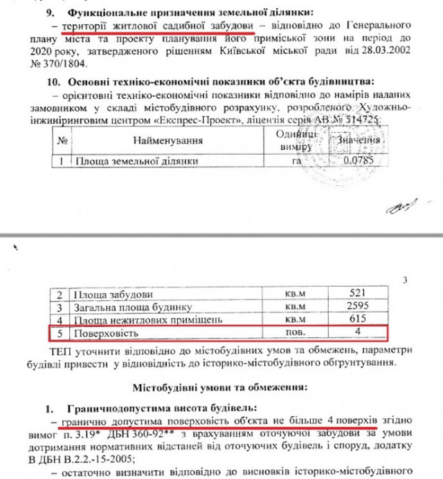 Відповідно до Генплану ділянка на вул. Мирній, 2/1 належить до території житлової садибної забудови. Це означає, що тут можна будувати приватні будинки не вище ніж 3-4 поверхи. Саме об’єкт з гранично допустимою висотою не більше 4 поверхів Департамент містобудування і архітектури КМДА погодив Білозір і Владу у грудні 2016-го.