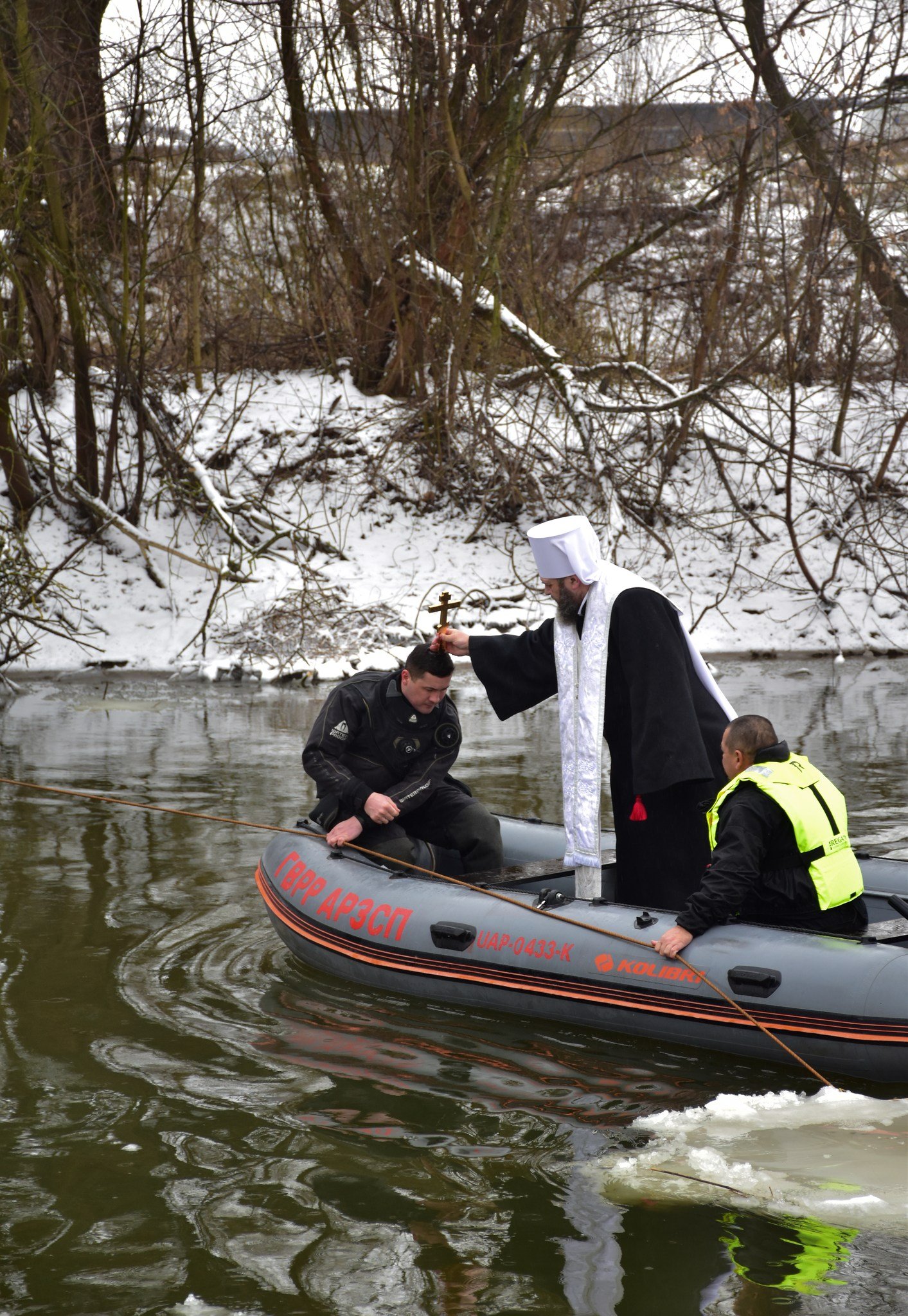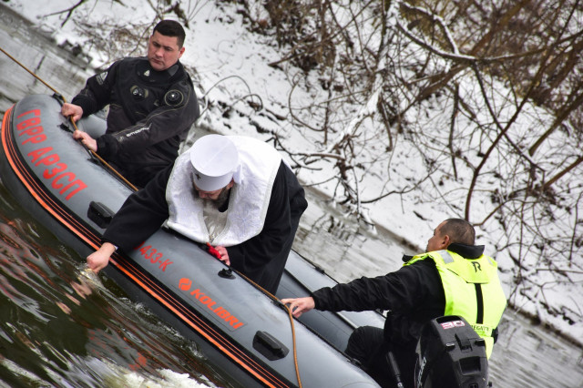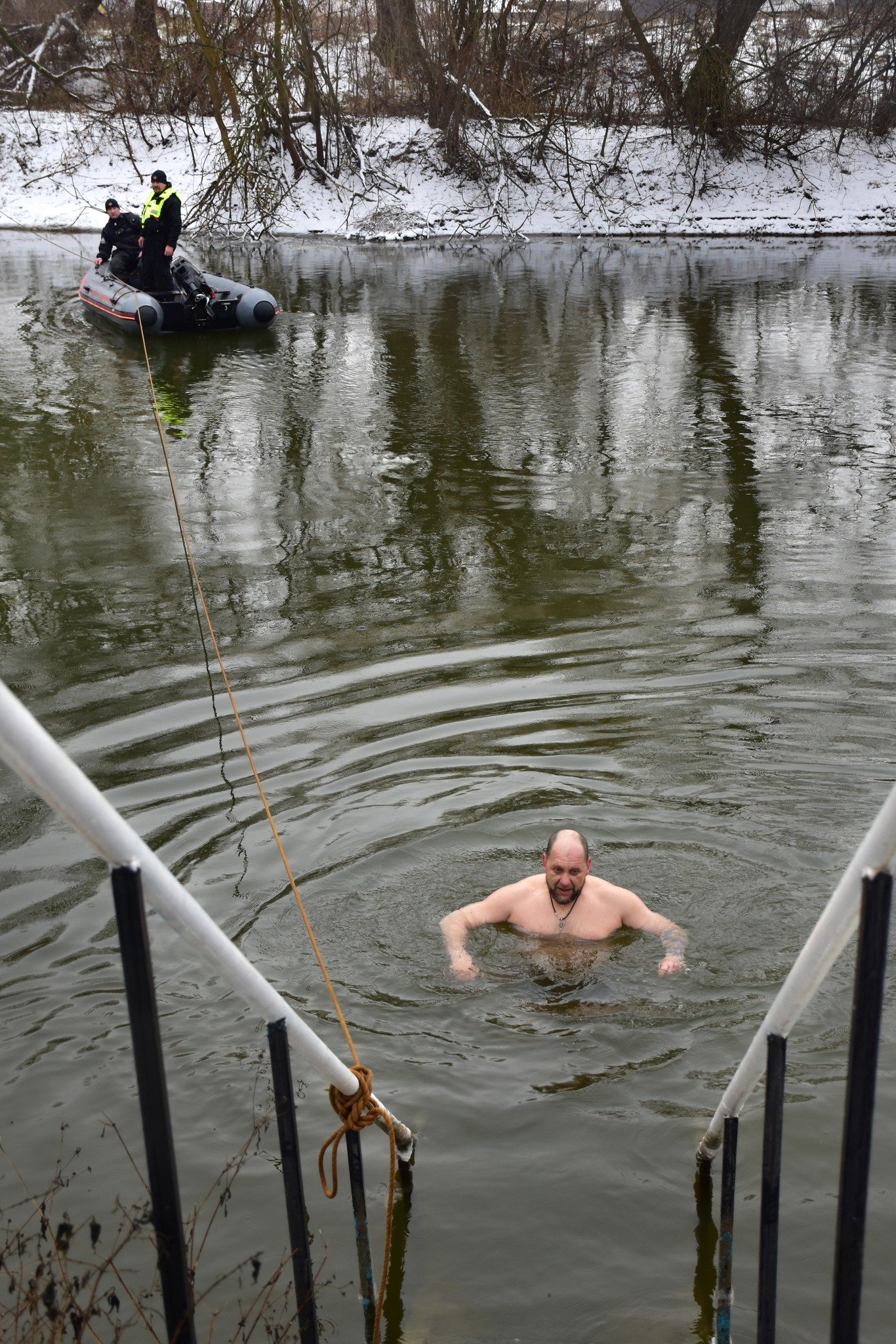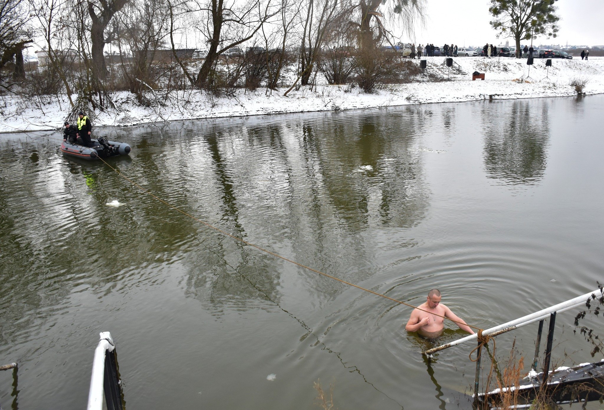 Луцькі рятувальники також пильнували за станом громадян, які виявили бажання зануритись у холодну січневу воду, надавали їм допомогу в разі потреби.
