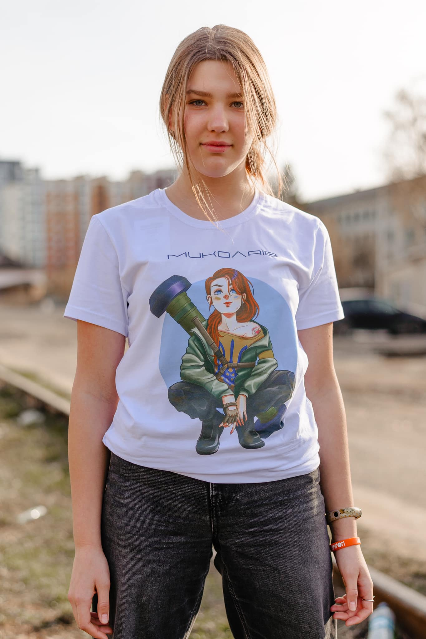 «Це потужна серія футболок, яку ми називаємо «дівчата-міста». Авторка цих ілюстрацій Ната Лі теж погодила нам друк. Ми зараз друкуємо шість малюнків: Маріуполь, Харків, Чорнобаївка, Конотоп, Ірпінь, Миколаїв. Але хочемо взяти дозвіл й на принт Херсон, про який треба голосно говорити і підтримувати його», – додає Юлія Грищук.