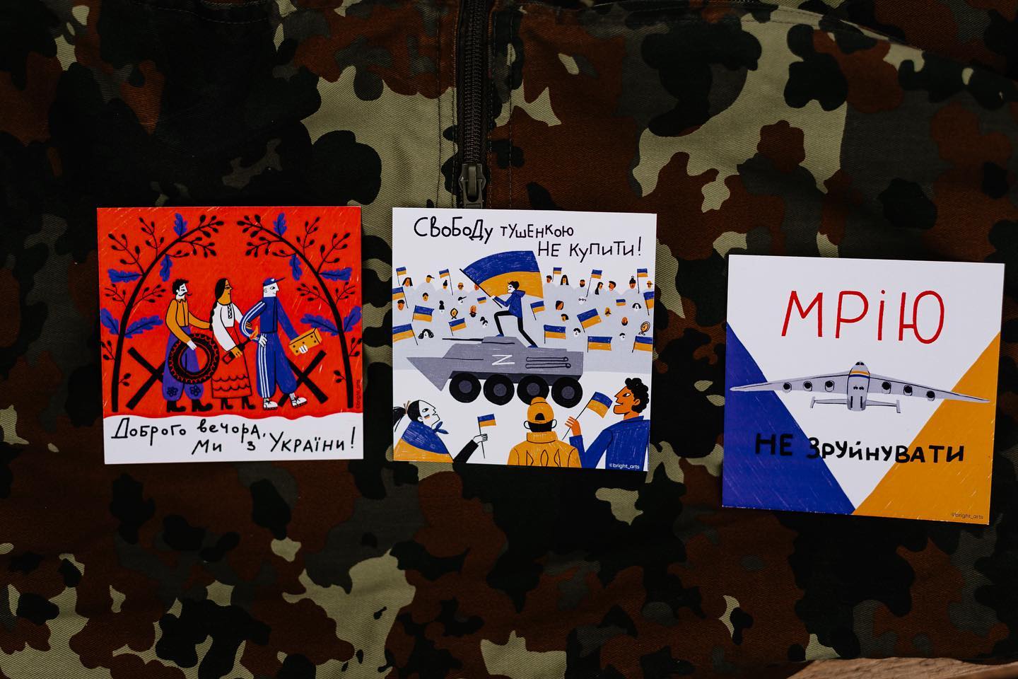 Вона розповідає: найпопулярніший принт – «Доброго вечора». Разом з ним купують футболки, екоторби, чашки, листівки. Також дуже полюбляють стікерпаки. Є також чудовий принт «Моя суперсила» з котиком.Ще один особливий принт – «дівчата-міста». Його авторка – українська художниця та ілюстраторка Ната Лі, яка дозволила надрукувати свої роботи на футболках.