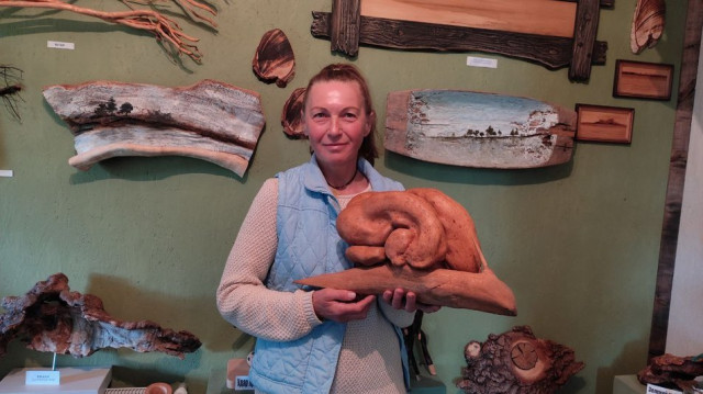 Влітку жінка продавала більше квітів. Нині, говорить, сезон закінчується. Букети фіксованої вартості не мають. Кожен дає стільки, скільки вважає за потрібне. Найбільша сума за букет була 250 гривень, розповідає Галина Міндер.Крім квітів, жінка продає також свої вироби. Каже: два роки тому у власній хаті облаштувала музей декоративного мистецтва і приймає тут відвідувачів. У музеї зібрала власноруч виготовлені роботи.«Я займаюся коренепластикою, малюю, роблю ляльки-мотанки, дерев’яні вироби, то з бетону можу вазу зробити, коли яке натхнення до мене прийде. Найбільше люблю працювати з деревом», – каже майстриня.