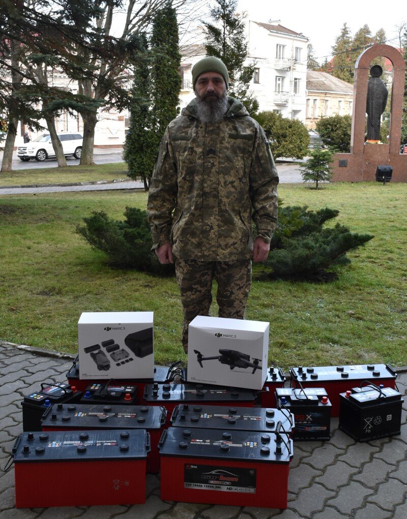Зокрема, для потреб військовослужбовців в/ч А1008 (2-го стрілецького батальйону) передано 12 акумуляторів різної модифікації, 2 квадрокоптери DJI Mavic 3 Fly More Covbo та 8 автомобільних шин, інформують у міськраді.
