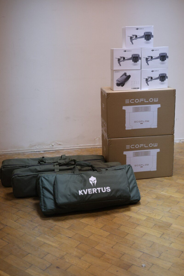 Для військової частини А4943 – два портативних радіоелектронних засоби протидії безпілотним літальним апаратам КВЕРТУС, один квадрокоптер DJI Maviс 3, а також зарядну портативну електростанцію EcoFlow DELTA MAX.