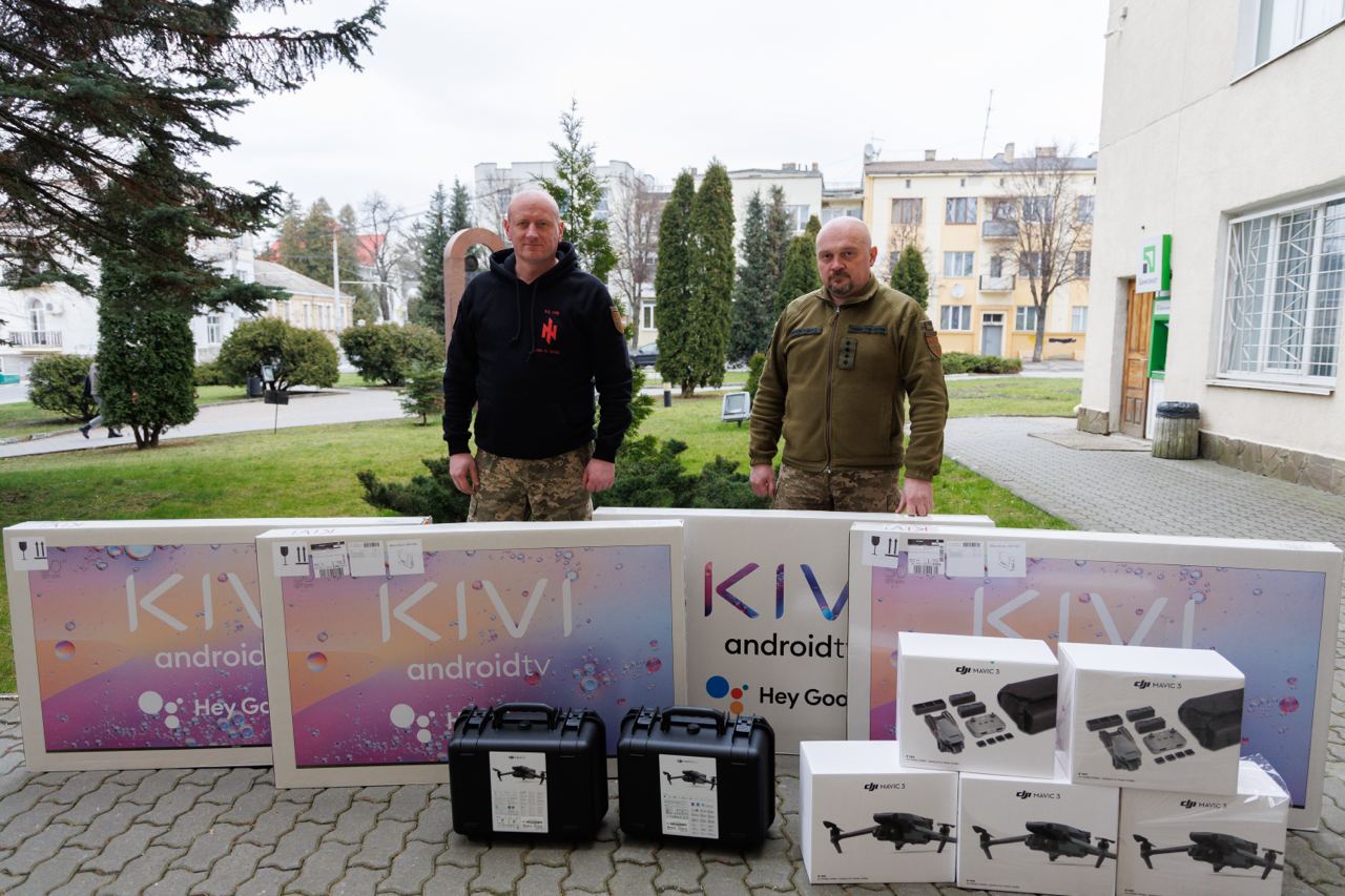 Для військовослужбовців в/ч А7113 передано з Луцька п’ять квадрокоптерів DJI Mavic 3 Fly More Combo, два квадрокоптери DJI Mavic 3 Thermal та чотири телевізори Kivi 50U 760 QB.