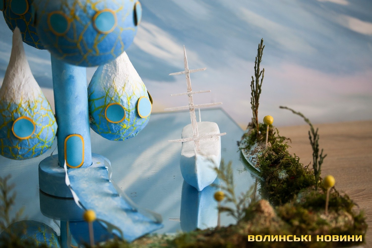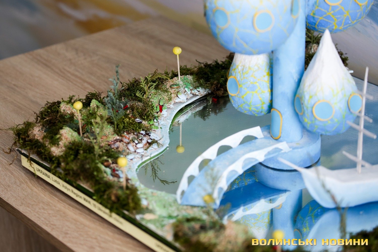 «Діти, які відвідують цю секцію, працювали над масштабною науковою роботою. Те, що ми бачимо, – це лише маленька частинка роботи. Цей макет – це невеличкий мікрорайон, в якому помістилися різні будівлі. А уся будівля розташована в кратері вулкана, заповненому водою. Цю роботу подали на міжнародний конкурс наукових робіт з архітектури, який щороку відбувається у Франції. Торік наші діти з дев’ятого класу посіли друге місце. Сподіваємося, що цього року вони матимуть не гірше місце. Однак ми вже ними пишаємося, адже слухачі секції зараз – це учні 10 класу, вони вже мислять масштабно, створюють грандіозні речі, які виходять за рамки, що дуже важливо у сучасному світі.