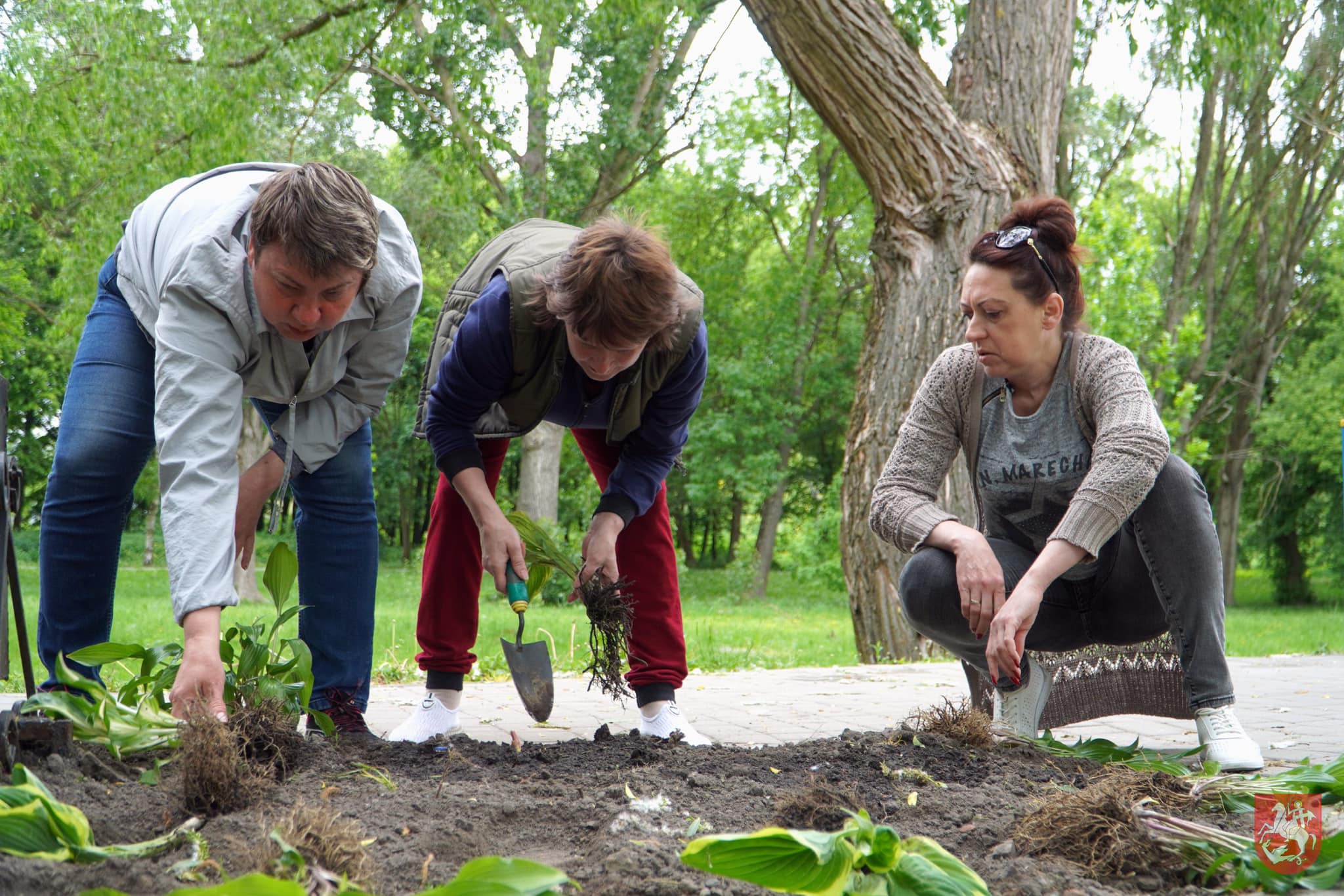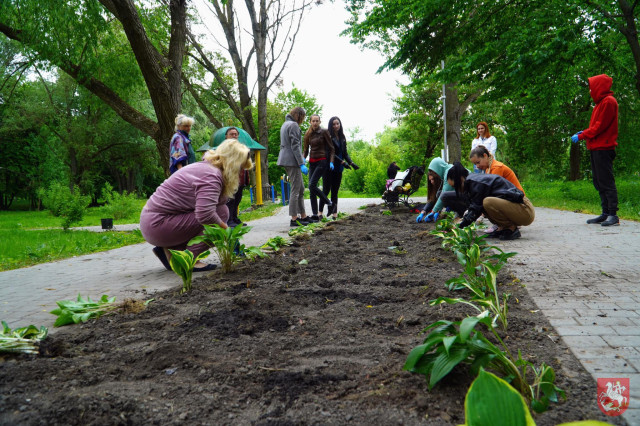 27 травня володимирчани разом із внутрішньо переміщеними особами, які проживають у громаді, а також комунальниками, висадили сотню лілій у парку «Слов’янський».