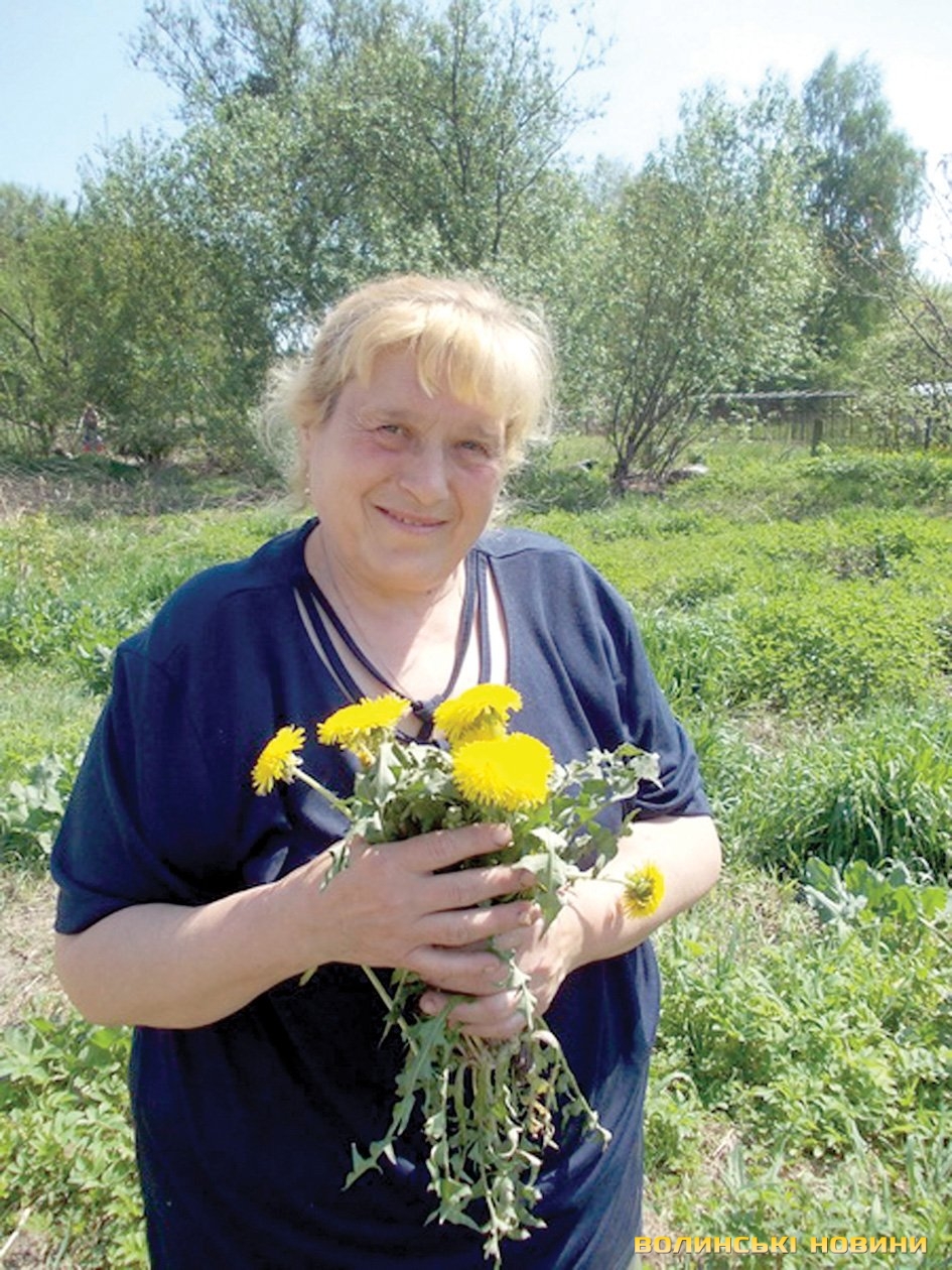 «Передусім в цей час я намагаюся зібрати якомога більше квітів кульбаби, – розповідає знана травниця з Луцька Віра Крась. – Із них готую настій, який дуже ефективний у лікуванні подагри, поліартриту, болю та запалення в суглобах. Отож, потрібно дві склянки щойно зірваного цвіту покласти у скляну банку й залити півлітром горілки. Банку закриваю і на три тижні ставлю в темне місце. На собі уже скільки переконувалася, що натирання хворих місць таким настоєм дуже помічне. Також ще від своєї бабусі я успадкувала дуже давній рецепт приготування меду з квіточок кульбаби. Такий смаколик чудово підвищує імунітет, допомагає при авітамінозі. Окрім цього, його можна розсмоктувати при ангінах, болях у горлі та гортані. Для його приготування слід взяти 50 квіточок, покласти в глибоку посудину і на годину залити холодною водою. Тим часом з однієї склянки води та двох склянок цукру приготувати сироп. Коли схолоне, вкинути в нього відціджені квіти. Через добу слід проварити усе це протягом п’яти-семи хвилин і відставити з плити. Коли повністю охолоне – знову на вогонь. Таку процедуру потрібно здійснити тричі, а тоді я перекидаю готовий мед у банку і ставлю в погріб».Здавна цінують і перші листочки кульбаби. Адже вони дуже багаті на різноманітні вітаміни, зокрема С, Е, В1, каротин і мінеральні солі заліза, фосфору, магнію, кальцію. Тому з листочків Віра Миколаївна радить приготувати корисні й дуже смачні салатики. Для цього зірвані листочки слід залити водою, в якій попередньо розвести столову ложку солі. Залишити на 30-40 хвилин, а тоді відтиснути і дрібно порізати. Додати дрібно порізані варені яйця, спеції, заправити майонезом – вітамінний смаколик готовий.