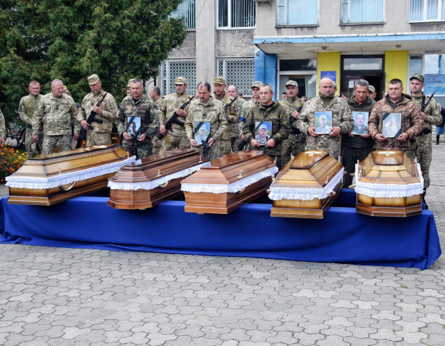 Тисячі людей прийшли віддати останню данину пам’яті тим, чиї життя обірвала війна – Андрія Михальчука, Андрія Ланевича, Сергія Стефанюка, Віктора та Сергія Бурдаків.