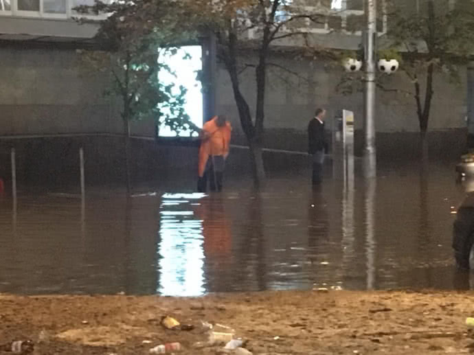 На вулиці Басейній позатоплювало автомобілі. На вулиці Антоновича також стався потоп, а на додачу прорвало каналізацію.