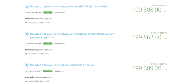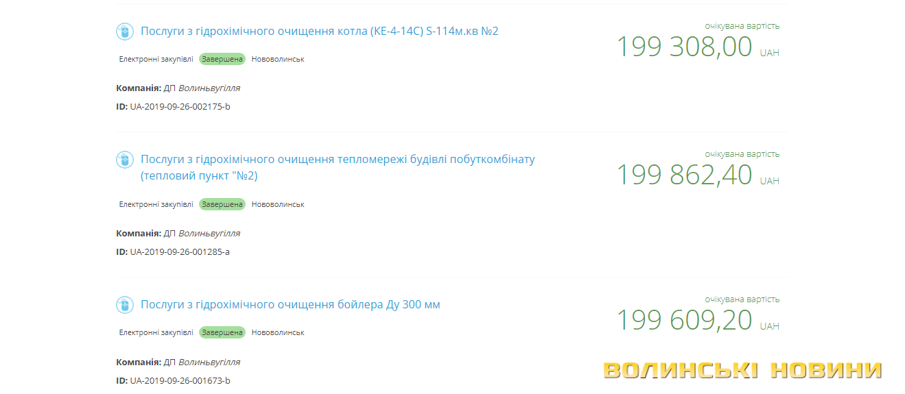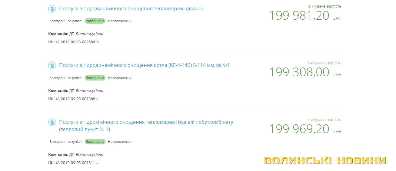 Зі слів працівників підприємства, після того, як на «Волиньвугілля» приїхав представник київської фірми, на сайті Prozorro у вересні минулого року оголосили тендер на гідродинамічне очищення батерей на ВП «шахта Бужанська». Київська компанія виконала роботи на суму 1 мільйон 200 тисяч гривень, однак колишній директор ДП «Волиньвугілля» Андрій Пилипюк та екскерівник ВП «шахта Бужанська» ДП «Волиньвугілля» Анатолій Фролов, які підписували договір на виконання робіт, нині не працюють.Тож представник київської компанії звернувся до нинішнього т.в.о. генерального директора ДП «Волиньвугілля» Володимира Юрківа з вимогою підписати акти виконаних робіт. Втім керівник «Волиньвугілля» звернув увагу на те, що було шість договорів, кожен з яких на орієнтовну суму 199 тисяч гривень, аби не перевищувати 200 тисяч гривень. Відтак керівник «Волиньвугілля» ці акти не підписав, підозрюючи корупцію, адже там не було такої кількості батарей, щоб виконати роботи на таку велику суму. До того ж, за ці кошти можна було б закупити нові батареї.
